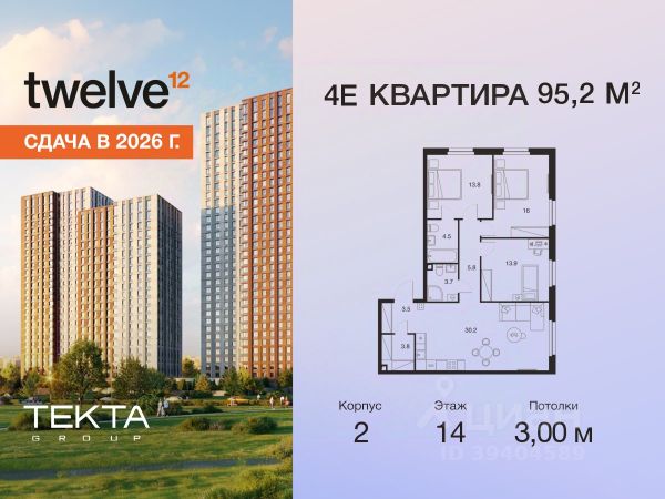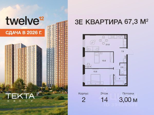 Рассрочка 0% с платежом от 120 000 ₽ в месяц. Сдача уже в 2026 году 3-комн. квартира в ЖК "Твелв" на 14 этаже в 34 этажном здании Корпус 1. Общая площадь: 55.1 кв.м., жилая: 36.20 кв.м. Высота потолков 3.00 м. ЖК Твелв от застройщика Текта Групп — это новый уровень жизни в районе Нагорный в 3-х минутах от станции метро. Проект представляет собой воплощение современной концепции комфортной жизни, где функциональность органично сочетается с эстетикой. Архитектура Твелв создает атмосферу, вдохновляющую на успех и располагающую к позитивным эмоциям. Дом, в котором каждый день будет наполнен уютом, а не рутинной работой и дорожными пробками. Твелв предлагает своим жильцам продуманные планировки, возможность объединения квартир, а также увидеть красоту города через угловое остекление увеличенных окон. Особое внимание уделено комфорту жителей: благоустроенная территория, зеленые насаждения, детские площадки, парковка. ЖК Твелв — это больше, чем просто жилье: это атмосфера умиротворенности, комфорта и гармонии.