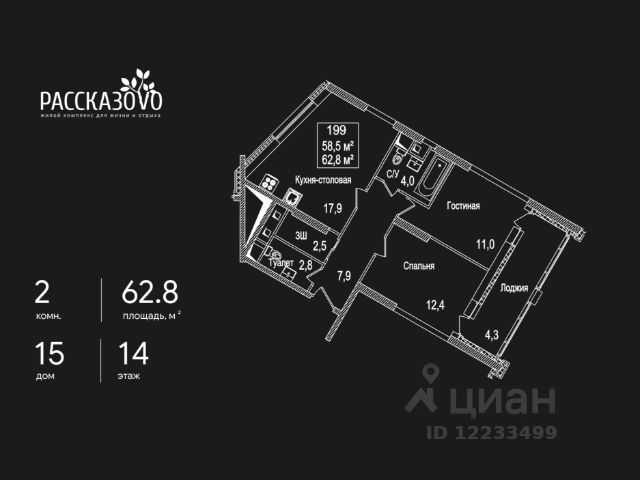 Открытие продаж готовых квартир! Продается двухкомнатная квартира с отделкой в городе-парке "Переделкино Ближнее". Общая площадь квартиры - 62 кв. м, этаж 14 из 17. Тип дома - монолитный. Дом сдан! Корпус 2 состоит из 3 секций. В квартире будет выполнена высококачественная отделка "под ключ" в одном из стилей: - Classic (классический стиль) - классические формы и сочетание материалов, светлые стены, темный пол, уютные теплые оттенки керамогранита в ванной. - Smart+ (современный стиль) - прямые линии, четкие формы, натуральные оттенки. Керамическая плитка до потолка в ванной и санузле. Город-парк "Переделкино Ближнее" расположен в 8 км по Боровскому шоссе от МКАД на территории Новой Москвы. ТРАНСПОРТНАЯ ДОСТУПНОСТЬ: - в пешей доступности находятся метро "Рассказовка" и МЦД-4 "Мичуринец" - 14 минут на машине до станции метро "Филатов Луг" Сокольнической линии - 15 минут на машине до станции метро "Саларьево" Сокольнической линии - 35 минут на метро до центра Москвы ПРЕИМУЩЕСТВА 2 КОРПУСА: - квартиры у леса - высота потолков - от 3 метров - входные группы с безбарьерным доступом - в каждой секции - 2 лифта: 1 пассажирский, 1 грузовой - колясочные на 1 этаже - коммерческие помещения на 1 этаже - на -1 этаже - кладовые помещения - огороженный двор без машин - обеспеченность машино-местами: гостевой и многоуровневый паркинги рядом с домом - 5-10 минут пешком до школы и детского сада 17 фаза строительства уникальна своим расположением - рядом с Ульяновским лесопарком, парком "Рассказовка" и Большим Федосьинским прудом. ВНУТРЕННЕЕ БЛАГОУСТРОЙСТВО: В рамках 17 фазы для жителей предусмотрено создание пространства свободного от машин - благоустроенные огороженные дворы с современными детскими и спортивными площадками, разделенными на зоны по возрастам. Более того, 17 фаза спроектирована таким образом, чтобы пешеходные зоны жилых корпусов были объединены в единое прогулочное пространство. РАЗВИТАЯ ИНФРАСТРУКТУРА В ОКРУЖЕНИИ: - открыты 2 школы на 3750 мест и строится 1 школа на 2100 мест - детский сад 1788 (всего в проекте 7 детских садов) - торговый центр Сказка - кафе, продуктовые магазины, аптеки, фитнес-центры, салоны красоты и пр. - в пешей доступности расположен благоустроенный парк Рассказовка