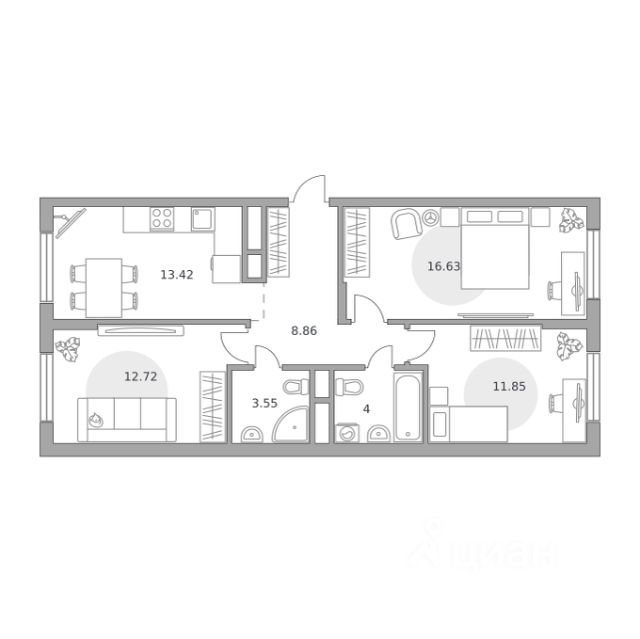 Продаётся 3-комнатная квартира 1091, площадью 72,75 м², на 15 этаже в ЖК "Пехра" корпус 8. Стоимость — от 14054506 руб. Квартира без отделки, планировка распашная, окна во двор.