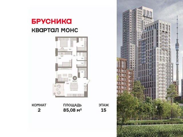 Продаётся 2-комнатная квартира площадью 68 кв.м на 15 этаже 55 этажного корпуса Эльбрус в квартале небоскребов "Upside Towers". В квартире отделка White-box, c видом на детский сад, БЦ Останкино. Номер квартиры А1504. Upside Towers - технологичный квартал строится в динамично развивающемся Бутырском районе, в 3 мин. от метро, в 5 мин. от ТТК. На территории 7 га возводится 5 высотных башен от 19 до 58 этажей, названных в честь главных вершин земли. Квартиры с панорамными окнами в пол, высокими потолками и современными инженерными решениями. Благоустроенная зеленая территория включает: приватные дворы, природный комплекс, прогулочный бульвар, ландшафтный парк 2,5 га с сенсорным садом и многофункциональными игровыми и спортивными площадками. Большое внимание в проекте уделяется созданию социальной инфраструктуры. Более 2000 кв.м. отдано под Upside club закрытый клуб, уникальное пространство для общения и развития жителей квартала, включая SKY SPA Relax на 47 этаже башни "Атлас" расслабляющей атмосферой, джакузи, сауной, залами для релаксации и йоги доступное жителям Upside Towers, всесезонное барбекю-патио, лаундж зону с камином и роялем, многофункциональные игровые пространства, домашний кинотеатр, коворкинг и переговорные. В башнях откроются смотровые террасы для резидентов с панорамными видами на город, парки, Останкинскую башню, ВДНХ, Ботанический сад и Москву-Сити. В рамках проекта строится государственная школа и детский сад, разместится более 15 000 кв.м. коммерческой инфраструктуры. Насыщенная социальная инфраструктура формирует множество сценариев для жизни на территории квартала. В Upside Towers применяются лучшие технологии и практики, чтобы обеспечить высшее качество жизни: Воздух, не уступающий по качеству горному, обеспечит приточно-вытяжная вентиляция. Пятиступенчатая очистка воды с сохранением полезных минералов. Центральное кондиционирование. Внутрипольные конвекторы с естественной конвекцией. Современные системы безопасности и мониторинга микроклимата. Высокоскоростной интернет на всей территории, в квартирах и паркинге за счет усиления GSM-связи всех ведущих операторов. Все места в подземном паркинге оборудованы зарядками для электрокаров. Бутырский район непрерывно развивается и готовится стать новым современным деловым районом Москвы. В рамках программы "Индустриальные кварталы" комплексного развития территории Огородного проезда будут построены современные образовательные и спортивные учреждения, торговые центры, кафе, банки, общественно-деловые здания и другие объекты. В пешей доступности работают школы, детские сады, поликлиники, аптеки, супермаркеты и многое другое. Рядом находится несколько крупных зелёных зон для спокойного отдыха: Парк Останкино, ВДНХ, Парк Сокольники, Гончаровский парк, в 15 минутах пешком располагаются знаменитые арт-пространства - дизайн-завод Flacon и "Хлебозавод". Время в пути на автомобиле до центра Москвы 15 минут. (Застройщик ООО "СЗ "К-Девелопмент")