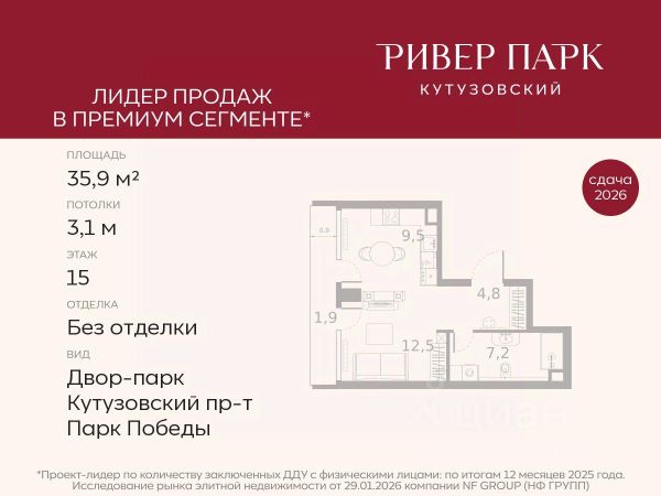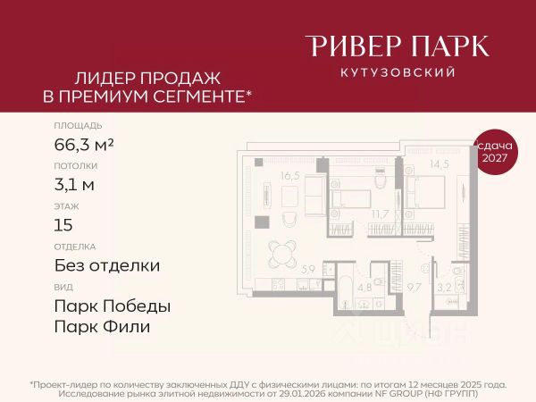 Продаётся 2-комнатная квартира общей площадью 61.30 м² на 15 этаже Жилого Комплекса Бадаевский. О нем говорили. Его ждали. Жилой комплекс "Бадаевский" на Кутузовском проспекте — это место для жизни, которое займет место в истории. Девелопер Capital Group. В "Бадаевском" исторические здания завода и футуристические "парящие" дома создают единый комплекс, который станет новой достопримечательностью и символом Москвы. Панорамное остекление, террасы и веранды дарят неординарные и захватывающие виды. Благодаря расположению домов и панорамному остеклению, жилые пространства в "Бадаевском" будут наполнены светом. А виды из окон домов-"лент" на Москву-реку, пивоваренный завод, небоскребы "Москва-Сити" и Белый дом дополнены принципиально новым ощущением высоты. На территории Бадаевского завода появится масштабный ландшафтный парк с концепцией "русский лес". Впервые в истории района Дорогомилово у жителей появится прямая связь набережной Тараса Шевченко с Кутузовским проспектом. Близость Москвы-реки добавляет к преимуществам "Бадаевского" природную энергетику и приятные прогулки на свежем воздухе. Подземная парковка позволит сделать территорию завода полностью пешеходной, а сам комплекс представит новый подход к организации открытого и уединенного пространства в центре Москвы. Расположение в начале Кутузовского проспекта делает проект не только престижным, но и удобным: до Третьего транспортного и Садового кольца можно доехать за 5 минут, а Кремль и основные исторические достопримечательности расположены в 15 минутах на автомобиле. Напротив "Бадаевского" находится офисный кластер "Москва-Сити". Для жителей комплекс будет создано не только новое масштабное благоустройство, но и вся необходимая инфраструктура. В исторических корпусах появятся магазины, бутики, кафе и рестораны, коворкинг и крафтовая пивоварня, а в зданиях элеваторов — русская баня. Кроме того, запланирован фермерский рынок и досуговый кластер с музыкальной студией, центром детского творчества и фитнес-центром с бассейном.