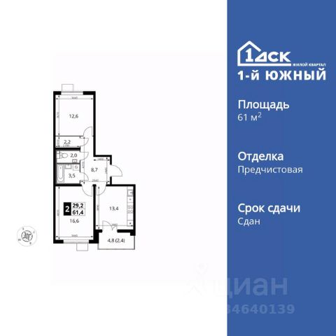 Прямая продажа от застройщика! Жилой Комплекс класса Комфорт Плюс. Продаётся 2-к квартира номер 829 общей площадью 57 кв.м. на 15-м этаже 24 этажного здания. Отделка Whitebox. Особенности квартиры: - МЦД-5 в пешей доступности - Квартал с собственной набережной - Свои 2 детских сада и школа - Просторная спальня, в которой можно разместить большую кровать. - Линейная планировка - максимальная функциональность и удобство. - Раздельный санузел - больше удобства для всех членов семьи. - Просторная кухня - место для семейных ужинов и кулинарных экспериментов. - Лоджия - уютное место для отдыха и тишины. Квартира с предчистовой отделкой (White box). Вам не придется заниматься черновыми и трудоёмкими работы, а чистовую отделку и дизайн - сделайте на свой вкус. Информация о комплексе: Комплекс 1-й Донской расположен в 7 км от МКАД по трассе М-4 Дон. В нем сочетаются все плюсы комфортной городской среды и природного окружения. В проекте достаточно большой процент квартир, выходящих на 2-3 стороны света. Секции-маяки формируют у зданий визуальную L-форму, что придает застройке структуру и ритмику объемов. На ощущение динамики работает и разная этажность зданий. Теплая цветовая палитра фасадов отражает природу Дона. Вечерами дома преображаются благодаря архитектурной подсветке, выгодно выделяясь на городском фоне. Природа оказывает положительное влияние на человека на всех уровнях восприятия: через зрение, запахи, звуки, тактильные ощущения. Неподалеку от ЖК Первый Донской: Ермолинский парк, Видновский лесопарк, Жуковский парк Транспортная доступность: Комплекс удобно расположен в 7 км от МКАД по трассе М-4 Дон (через Видное). Расстояние до Каширского шоссе составляет 12 км. Добраться до метро и центра Москвы позволяет развитая сеть маршрутов общественного наземного транспорта. Действующая ж/д станция Калинина Павелецкого направления в 15-17 минутах ходьбы (МЦД-5 в 2025-2026 гг). Внутренняя инфраструктура: Проект 1-й Донской соседствует с бурно развивающимся районом, основная инфраструктура которого уже сложилась. В строительстве современных жилых комплексов в округе есть свои плюсы: здесь формируется продуманная и комфортная городская среда. Что касается внутренней инфраструктуры, на территории квартала будут расположены собственные муниципальные 2 детских садика и школа, которые помогут совместить приятное с полезным. Территория комплекса пронизана целой сетью живописных пешеходных маршрутов, позволяющих попасть в любой уголок района. Основные пути, как водится, "торговые". Они проходят вдоль магазинов, кафе и других представителей коммерции и отделяются от проезжей части зеленой "фито" - стеной. Среди крупных социальных объектов предусмотрены своя поликлиника и торговый центр с примыкающей площадью для общественных мероприятий. Уют начинается с продуманного подъезда. Сквозные подъезды наполнены светом благодаря сплошному остеклению. Вход в них есть и с улицы, и со двора.