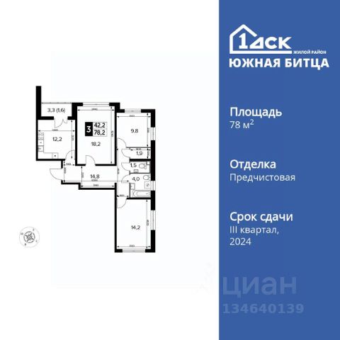 Продаётся 3-комн. квартира площадью 79,3 кв.м на 15 этаже 16 этажного дома (Корпус 42, Секция 1) проекта ПИК Восточное Бутово. Светлый просторный подъезд на уровне земли, функциональная планировка, большие окна, c отделкой. Жилой квартал "Восточное Бутово" расположен в 5 км от МКАД по Симферопольскому шоссе, в Ленинском районе Московской области. Это экологически благоприятное место по соседству с Бутовским лесопарком. В 25 минутах на машине - станции метро и МЦД "Бутово". В "Восточном Бутово" уже открылись пять детских садов из десяти запланированных и одна школа из четырёх. Внутри квартала будет две поликлиники, одна из которых уже работает. В проекте два пешеходных бульвара - по одному из них уже можно гулять и кататься на велосипеде. В закрытых дворах-парках не будет автомобилей - мы построим многоуровневый паркинг, чтобы сделать район ещё более комфортным и безопасным для жителей. Артикул 643270 (Застройщик ООО "Лотан")