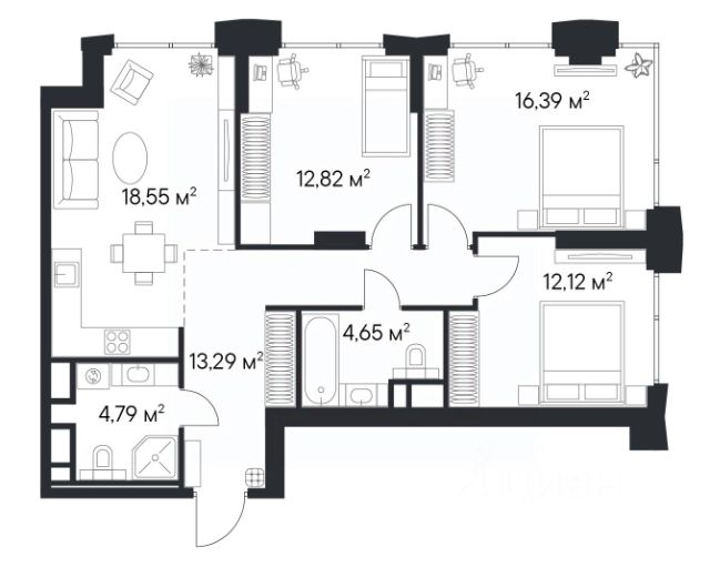 Продаётся 3-комнатная квартира 398, площадью 66,17 м², на 15 этаже в ЖК "Beluck Коломенское" корпус 1. Стоимость — от 28141813 руб. Квартира white box, планировка угловая, окна на улицу.