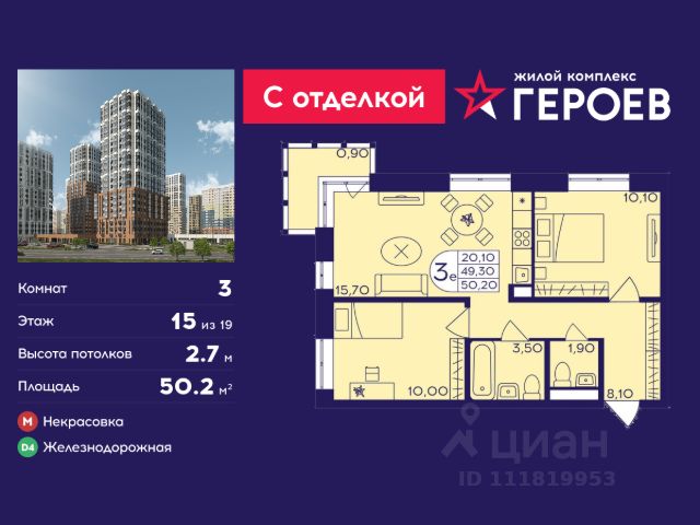 Продаётся студия 28.8 кв. м. в жилом комплексе "Героев" в Балашихе, Железнодорожный. Квартира расположена на 15 этаже 408 корпуса. Все квартиры представлены с чистовой отделкой. Вам не нужно тратить время и дополнительные финансы на ремонт или жить в шуме строительных работ - достаточно перевести свои вещи, расставить мебель и всё готово! Жилой квартал "Героев" - это уютный проект для семей с детьми. Всего 40 минут до центра Москвы. В квартале созданы все условия для досуга всех возрастов: игровые и спортивные площадки, места для отдыха и прогулок, магазины, кафе и пункты выдачи. За 15 минут можно дойти от дома до Ольгинского лесопарка - популярного места для прогулок и отдыха на свежем воздухе. Здесь приятно гулять всей семьёй, заниматься спортом или устроить пикник в выходной день. Преимущества: Квартира с готовой отделкой. Пространство полностью подготовлено для жизни: не нужно тратить время и деньги на ремонт или ждать его окончания. После получения ключей достаточно расставить мебель - и можно сразу заезжать и жить. Продуманные и светлые планировки. Просторные кухни-гостиные создают комфортное пространство для отдыха и встреч с близкими. В квартирах предусмотрены удобные гардеробные, благодаря чему легко поддерживать порядок и не перегружать комнаты шкафами. Увеличенное остекление. Большие окна наполняют квартиру естественным светом в течение всего дня, создавая ощущение простора и уюта, а также визуально расширяя пространство и делая интерьер более воздушным. Пешая доступность до станции Железнодорожная (МЦД-4) - дорога займёт не более 30 минут до центра Москвы: станции метро "Курская", "Площадь Ильича" или ТПУ Нижегородская.