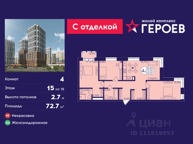 Продаётся студия 28.8 кв. м. в жилом комплексе "Героев" в Балашихе, Железнодорожный. Квартира расположена на 15 этаже 408 корпуса. Все квартиры представлены с чистовой отделкой. Вам не нужно тратить время и дополнительные финансы на ремонт или жить в шуме строительных работ - достаточно перевести свои вещи, расставить мебель и всё готово! Жилой квартал "Героев" - это уютный проект для семей с детьми. Всего 40 минут до центра Москвы. В квартале созданы все условия для досуга всех возрастов: игровые и спортивные площадки, места для отдыха и прогулок, магазины, кафе и пункты выдачи. За 15 минут можно дойти от дома до Ольгинского лесопарка - популярного места для прогулок и отдыха на свежем воздухе. Здесь приятно гулять всей семьёй, заниматься спортом или устроить пикник в выходной день. Преимущества: Квартира с готовой отделкой. Пространство полностью подготовлено для жизни: не нужно тратить время и деньги на ремонт или ждать его окончания. После получения ключей достаточно расставить мебель - и можно сразу заезжать и жить. Продуманные и светлые планировки. Просторные кухни-гостиные создают комфортное пространство для отдыха и встреч с близкими. В квартирах предусмотрены удобные гардеробные, благодаря чему легко поддерживать порядок и не перегружать комнаты шкафами. Увеличенное остекление. Большие окна наполняют квартиру естественным светом в течение всего дня, создавая ощущение простора и уюта, а также визуально расширяя пространство и делая интерьер более воздушным. Пешая доступность до станции Железнодорожная (МЦД-4) - дорога займёт не более 30 минут до центра Москвы: станции метро "Курская", "Площадь Ильича" или ТПУ Нижегородская.