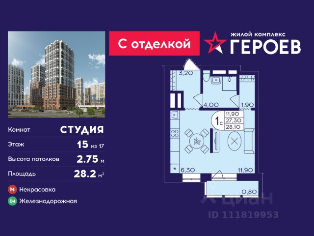 • ✓ В базе Циан 137 квартир на 15 этаже рядом с метро Ольгино
