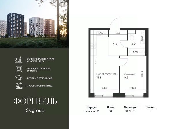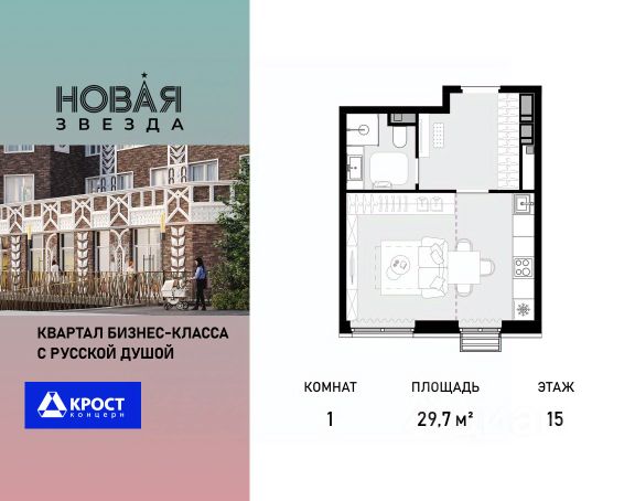 Продаётся 1-к квартира 29.7 кв.м. на 15-м этаже 22 этажного дома, корпус 2 - Резиденция "Сочи" . Без отделки. Легендарный квартал "Новая звезда" продолжается II очередью, которая спроектирована как мультифункциональный кластер. ЖК "Новая Звезда" расположен на территории Новой Москвы, в 10 мин. от м. Теплый стан и в 9 мин. пешком от строящейся станции метро "Бачуринская". Дизайн квартала спроектирован так, чтобы создать 2 города — Гостиный двор и комплекс жилых резиденций. Гостиный двор это стилобат, в котором разместятся рестораны, магазины, спортивные секции, детские кружки. Это место для активной городской жизни прямо в вашем квартале. Гостиный двор, безусловно, является уникальным форматом организации общественной жизни, предлагая жителям квартала весь необходимый спектр услуг в шаговой доступности от дома.. Жителям II очереди квартала "Новая звезда" будут доступны все инфраструктурные преимущества единого квартала: - образовательный кластер с уже построенной инновационной школой нового поколения; - спортивная инфраструктура; - торговые площади с услугами на первых этажах жилых домов.Прямая продажа от застройщика ООО СЗ "ГСД".