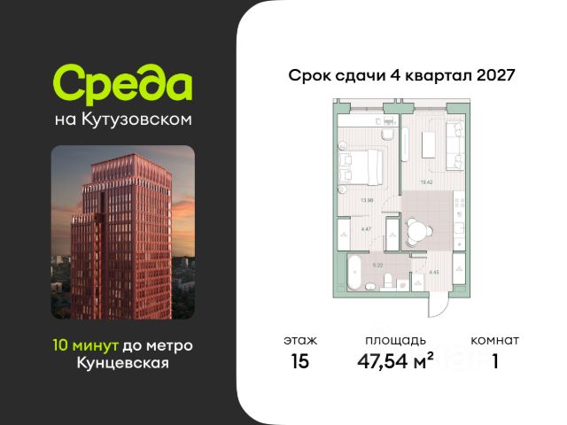 О квартире Продаётся трехкомнатная квартира общей площадью 72.30 кв. м. с отделкой на выбор: черновая, White Box. Квартира на 15 этаже корпуса 5 в жилом комплексе бизнес-класса "Среда на Кутузовском". До метро "Кунцевская" 10 минут пешком. Исторический зелёный район "Среда на Кутузовском" строится в Кунцево - историческом и экологически чистом районе Москвы. Здесь нет крупных производств, много лесных массивов и роза ветров, которая обеспечивает приток чистого воздуха. Район наполнен жизнью и уже развит: много детских садов и школ, поликлиники, магазины, кафе, спортивные объекты, парки. - 10 минут пешком до станции метро "Кунцевская". - 5-8 минут на машине до Кутузовского проспекта и Можайского шоссе и 10-15 минут до Рублёвского и МКАД. - 15 минут езды до Крылатских холмов, Суворовского парка и заказника "Долина реки Сетунь". Акции и спецпредложения - Выгода 12%: если внести 100% оплату или оформить семейную ипотеку под 6%. Действует до 13 апреля. - Низкие ставки по ипотеке: 0,1% в первый год или 0,11% в первые два года кредита. - Трейд-ин от "Среды": можно обменять свою текущую квартиру на новую. - Ипотека для семей с детьми: если ребёнку до 7 лет, предлагаем льготную ставку 3,5% О жилом комплексе "Среда на Кутузовском" - новый квартал с башнями от 12 до 44 этажей, окружённый лесными массивами и историческими усадьбами старой Москвы. Во внутреннем дворе есть водоём, многоуровневые зоны с детскими и спортивными площадками, коворкинг на свежем воздухе и локации для уединённого отдыха. Особенности - Архитектура с многослойными фасадами. - Квартиры с террасами и мастер-спальнями. - Окна в пол на всех этажах. - Общественные лаунж-гостиные. - Собственный ландшафтный парк во дворе. - Зоны барбекю и площадки для отдыха у воды. - Умный подземный паркинг. - Стрит-ритейл на первых этажах.