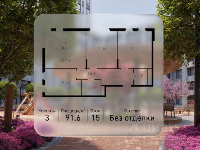 Продается трехкомнатная квартира без отделки в 11 фазе города-парка "Первый Московский". Общая площадь квартиры - 94,9 кв. м, этаж 15 из 22. Планируемый срок ввода в эксплуатацию - 1 квартал 2029 года. Тип дома - монолитный. ТОЛЬКО ДО 30 АПРЕЛЯ выгодные условия на приобретение квартиры в ипотеку или рассрочку. Звоните - и мы подберем оптимальное предложение под ваш запрос! 5 корпус состоит из 2 секций: - 1 секция - без отделки - 2 секция - с отделкой White Box Город-парк "Первый Московский" расположен всего в 7 км по Киевскому шоссе от МКАД на территории Новой Москвы. Из города-парка прямой выезд на Киевское шоссе и трассу Солнцево-Бутово-Варшавское шоссе. ТРАНСПОРТНАЯ ДОСТУПНОСТЬ: - 7 мин. на личном автомобиле или 10 мин. на автобусе до станции метро "Филатов Луг" - 10 мин. на автомобиле или 20 мин. на автобусе до станции метро "Рассказовка" или "Саларьево" ПРЕИМУЩЕСТВА 5 КОРПУСА: - живописные виды на Ульяновский лесопарк - входные группы с безбарьерным входом - просторная колясочная в каждой секции - в каждой секции - 3 лифта: 2 пассажирских, 1 грузовой - количество квартир на этаже: 1 секция - 4 квартиры, 2 секция - 5 квартир - на 1-ом этаже в секции 2 расположено коммерческое помещение - на -1-ом этаже каждой секции запроектированы кладовые помещения - обеспеченность машино-местами: гостевой паркинг 48 м/м, многоуровневые паркинги рядом с домом ВНУТРЕННЯЯ ИНФРАСТРУКТУРА И БЛАГОУСТРОЙСТВО: Дома 11 фазы граничат с Ульяновским лесопарком. Вся территория 11 фазы разделена на 2 типа: - приватное дворовое пространство с детскими игровыми и спортивными площадками. Дворы свободны от машин. - прогулочные маршруты с зонами отдыха. Прогулочный маршрут объединяет дома 11 фазы в единое пространство, за счёт оригинальной геопластики создаётся уникальный разноуровневый ландшафтный узор. РАЗВИТАЯ ИНФРАСТРУКТУРА В ОКРУЖЕНИИ: - общеобразовательная школа 2120 корпус ш3 (всего в проекте 5 школ) - детский сад 2120 корпус д4 (всего в проекте 8 детских садов) - школа искусств - поликлиника - торговый центр Столица - кафе, продуктовые магазины, аптеки, фитнес центры, салоны красоты и пр. - в пешей доступности благоустроенный парк Филатов Луг