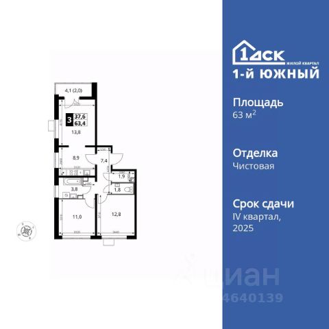 Квартира с кухней-гостиной и тремя спальнями в Квартале Герцена. Особенности планировки: окна на две стороны, предчистовая отделка. Квартиру можно купить онлайн. В квартире выполнена отделка "под чистовую". Установлены окна с двойным стеклопакетом, радиаторы с терморегуляторами. На полу цементно-песчаная стяжка. В квартиры заведены кабели для интернета и ТВ. Входная сейф-дверь не требует замены. Организован поквартирный учёт энергоресурсов (водоснабжение, отопление, электричество). Квартал "Герцена" расположен в Бирюлёве Восточном — районе на юге Москвы. Дорога до ТТК займет всего полчаса на автомобиле, до станции метро и ж/д станции "Царицыно" — 13 минут, а до автовокзала "Южные ворота" — 20 минут. До автобусных остановок можно дойти пешком. В 2027-2028 году откроется новая станция метро "Лебедянская", дорога до неё займет всего 18 минут. Общая площадь "Квартала Герцена" составляет 27,3 га. Дома состоят из разноуровневых секций высотой от 6 до 55 этажей с видовыми террасами и балконами. На территории квартала будет построена поликлиника, детский сад на 350 мест и воспитательно-образовательный комплекс на 1075 мест, а также рестораны, клиники, магазины и салоны красоты. Объявление от застройщика. Ипотека, материнский капитал. Обмен — один из способов покупки. Обмен подойдёт, если вы хотите быстро поменять старую квартиру на новую. Получить ипотеку или рассрочку, а также обменять квартиру можно онлайн. Запишитесь на онлайн-презентацию по телефону или на сайте. квартиры в нашей базе: ГРЦ01.2-Ж4.15.14.