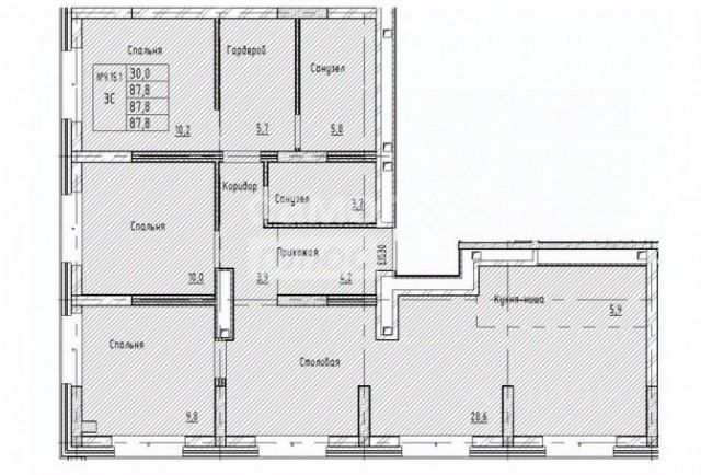 Квартира с кухней-гостиной и двумя спальнями в квартале "Метроном". Особенности планировки: вид во двор, новые лоты, предчистовая отделка. квартиры в нашей базе: КВМ-КВМ01-5-5.15.5.