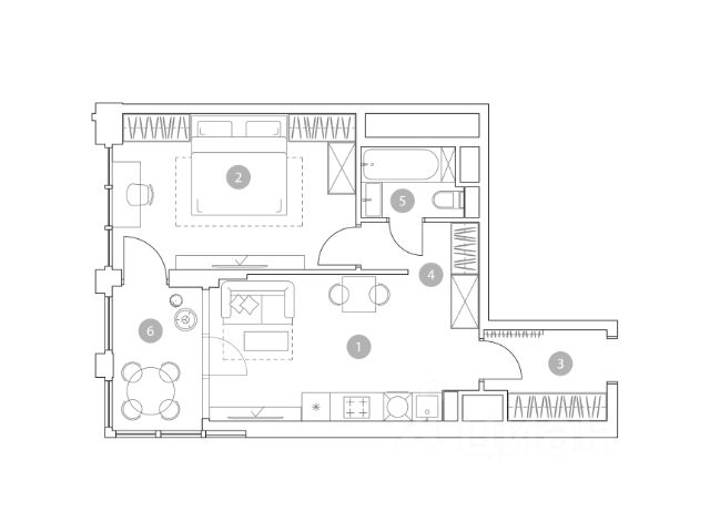 Квартира разделена на несколько функциональных пространств: