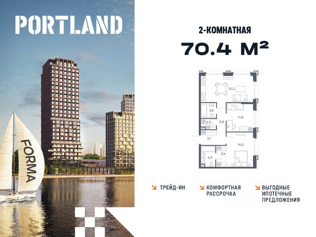 Старт продаж! Продаётся 2-комнатная квартира от застройщика ГК "КОРТРОС" в жилом комплексе бизнес-класса ULTIMAcity. Квартира расположена на 15 этаже 52 этажного корпуса 2. Общая площадь 55,60 м². Без отделки. В квартире: • Окна на две стороны света • Гардеробная ULTIMAcity — жилой комплекс бизнес-класса в перспективном районе на юго-востоке Москвы. На его территории появятся 9 башен на 756 этажей, двухуровневый подземный паркинг, собственная инфраструктура, включая детский сад и школу. Всего девелопер благоустроит территорию в 2,6 га. Ближайшая станция метро — "Южный порт". Она откроется в 2028 году и будет находиться в 2-х минутах ходьбы. А прямо напротив расположится остановка водного автобуса-электрохода "Синичка". Дорога от квартала будет удобна и для автомобилистов: - до Кремля — 12 км - до МКАД — 12 км - до выезда на ТТК — 3 км - до Садового кольца — 8 км В двух корпусах первой очереди ULTIMAcity этажностью 45 и 52 реализуется 1 079 квартир с продуманными, рациональными планировочными решениями. В ассортиментной линейке представлены однокомнатные квартиры от 28,2 до 61 кв. м, двухкомнатные лоты от 44,3 до 95,4 кв. м, квартиры с тремя (71 — 115,57 кв. м) и четырьмя спальнями (106,6 — 114,97 кв. м). В экспозиции также есть квартиры с террасами, лоджиями, тремя и четырьмя санузлами, а также с функциональными нишами-кладовыми на кухнях. Запроектированы и эксклюзивные двухуровневые резиденции со вторым светом, в том числе с видом на Москву-реку, площадью от 77,7 до 141,9 кв. м. В рамках проекта запланировано строительство 9 корпусов, школы на 500 учащихся и детского сада на 225 мест. Еще будет создана продуманная инфраструктура для жителей: детские и спортивные площадки, амфитеатр для мероприятий, беседки и теплицы для садоводства, коворкинг, детский клуб и ресторан с открытой террасой. Доступ в жилой комплекс осуществляется по биометрическому контролю - Face ID. Вокруг квартала будет приватная территория с видеонаблюдением и консьерж-сервисом 24/7. Лобби корпусов будут иметь двойные выходы: на улицу и во внутренний закрытый двор.
