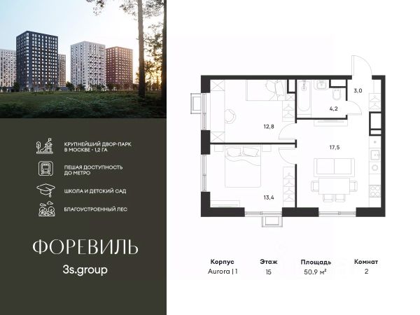 Продается двухкомнатная квартира 517 в новостройке ЖК "Бунинские кварталы" по адресу Москва, ТиНАО, Новомосковский АО, Сосенское С/П, жилой комплекс Бунинские Кварталы, 9.1, район Коммунарка, Новомосковский административный округ, Москва. Общая площадь квартиры - 41.90 кв. м., этаж 15 из 19, секция 7. Тип проекта, по которому построен дом - монолит, компания-застройщик - ООО "А101". Стоимость квартиры - 16044348 Р. Срок сдачи - 2 квартал 2026. ЖК "Бунинские кварталы" строится на юго-западе Москвы. Монолитные дома в лаконичной стилистике гармонируют с живописной природой. Из любой точки района удобно добираться до природных объектов, ключевых транспортных узлов, крупных торговых, спортивных, деловых и медицинских центров. Концепция уникального благоустройства района - "Выходи гулять!". Здесь появятся эстрада для районных творческих мероприятий, спортивные и игровые площадки, скейт-парк, дружелюбные пространства для домашних питомцев, благоустроенная набережная Ивановского пруда. В районе формируется собственная развитая инфраструктура: современные школа на 1100 мест и 2 детских сада на 540 малышей, магазины у дома и сетевые супермаркеты, фитнес, кафе, салоны, детские развивающие центры. Крытый каток "Самолёт Арена" - в 10 минутах пешком. За 15 минут можно дойти до действующей станции метро "Потапово". Предусмотрены удобные автомобильные выезды на проспект Куприна и улицу Александры Монаховой. Особенности "Бунинских кварталов": - ст. метро "Потапово" - 15 минут пешком - своя школа и детские сады - безопасные дворы без машин с системой контроля доступа - насыщенная инфраструктура - в шаговой доступности и на первых этажах домов