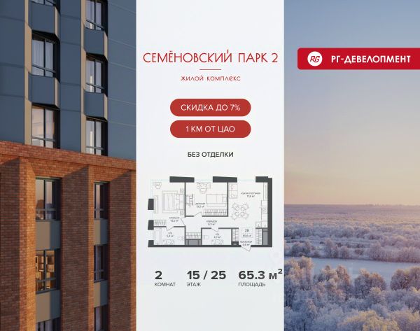 Ипотека для каждого! Полная стоимость кредита от 12,378% до 18,537%. Ставка от 0,11% в АО "Альфа-Банк", ген. лицензия ЦБ РФ 1326 от 16.01.2015. Ставка фиксируется на первые 12 месяцев, далее полная стоимость кредита от 22,025% до 24,935% ставка 21,59%. Первоначальный взнос — от 20,1% от стоимости квартиры. Срок кредитования — от 4 до 30 лет. Ипотека на весь срок! Полная стоимость кредита от 23,396% до 26,058% со ставкой 14,5%! Первоначальный взнос —от 20,01% от стоимости квартиры. Срок кредитования — от 3 до 30 лет. АО "Банк ДОМ.РФ" универсальная лицензия Банка России 2312 от 19.12.2018. Скидка 7% при покупке квартиры! Цена указана с учетом максимального размера скидки. Продается 1-к квартира 39,8 кв.м. в ЖК "Семеновский парк 2" на 15-м этаже 18 этажного дома. Компания "РГ-Девелопмент" предоставляет скидку на квартиры в жилом комплексе. Акция действительна до 28.02.2026 включительно. Чтобы воспользоваться предложением, необходимо подписать договор на приобретение недвижимости до 28.02.2026 включительно. Компания "РГ-Девелопмент" вошла в ТОП-10 девелоперов по объёму введённого жилья в "Старой Москве" по итогам 2025 года. Прямая продажа от застройщика! Квартиры без отделки. Срок сдачи корпуса - 1 кв. 2026 г. ЖК "Семеновский парк 2" - это идеальное место для того, чтобы стать вашим домом. Проект расположен в исторической части Москвы вблизи Измайловского лесопарка, в 1 км от ЦАО. 4 станции метро отделяют вас от Красной площади и 15 минут на автомобиле - от Садового кольца.