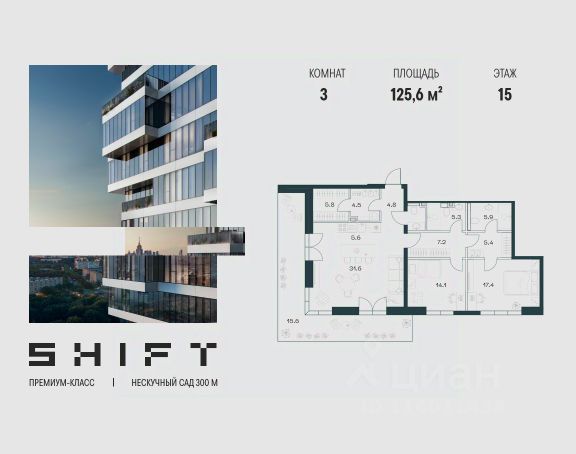 • ✓ В базе Циан 24 квартир на 15 этаже станция Площадь Гагарина (МЦК)