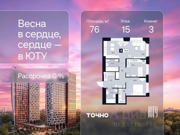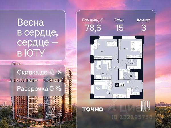 Скидка до 18% в апреле на выделенный пул лотов! ЮТУ — камерный проект бизнес-класса с исключительной архитектурой, видовыми квартирами и подходом к большой благоустроенной набережной канала имени Москвы. Проект создает идеальный баланс жизни в городе. Это приватный оазис, где в любой момент можно сменить обстановку и выбрать любой из тысячи маршрутов к активному отдыху и ярким впечатлениям. Удачное месторасположение: • Первая линия в прибрежной части Химкинского водохранилища • Исключительно тихий и зелёный район Южное Тушино • За 2 минуты можно спуститься к воде, за 10 минут найти зеленые парки и готовую инфраструктуру, за 30 минут доехать до Кремля Концепция проекта: • Две футуристичные башни, соединенные торговой галереей от бюро ATRIUM • 60 неповторяющихся планировок: квартиры с угловым панорамным остеклением, мастер-спальнями и гостиными до 39м², а также просторные квартиры площадью до 128,6 м² Чувство эксклюзивности: • Своя приватная жилая экосистема только для резидентов домов • Лаунж-терраса на крыше • В проекте предусмотрен закрытый двор-парк. Прогрессивные технологии: • 3-х уровневая система безопасности (Face ID, BLE-метки, видеонаблюдение) • Умный паркинг с распознаванием номеров Проект федерального девелопера ТОЧНО, который входит в ТОП-5 девелоперов России по объемам строительства.