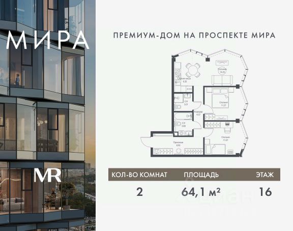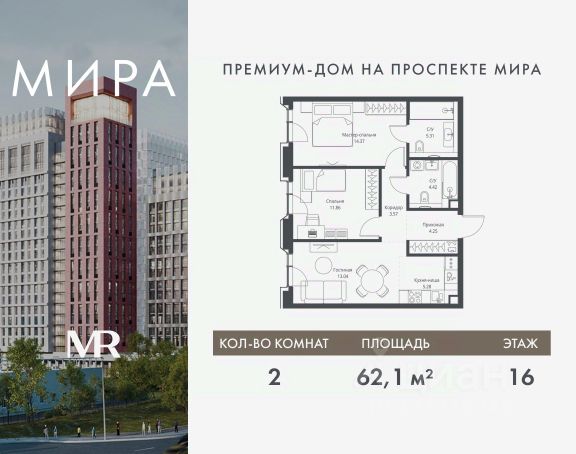 Прямая продажа от застройщика. Продаётся 2-комнатная квартира общей площадью 56.56 м² без отделки в доме премиум-класса МИРА на 16-м этаже 23 этажного дома. Квартира расположена в корпусе 2. Дом премиум-класса МИРА это: • Спокойный район с богатой историей и сложившейся инфраструктурой • Авторская архитектура на стыке классики и современности • Вход в парк прямо из жилого комплекса • Панорамные виды на Яузу, парки, ВДНХ и скульптуру "Рабочий и колхозница" • Удобные сервисы и безопасность для каждого резидента Расположение: Жилой квартал расположен в Алексеевском районе на северо-востоке Москвы, на второй линии домов, таким образом вы сможете дистанцироваться от шума и суеты проспекта Мира, но при этом будете жить недалеко от этой важной городской магистрали. Прямо у дома: • Парк Акведук • Река Яуза • Памятник "Рабочий и колхозница" Пешком: • 16 мин м. ВДНХ На автомобиле: • 12 мин ТТК • 15 мин Садовое кольцо • 12 мин Национальный парк "Лосиный остров" Благоустройство: Концепция благоустройства от бюро "ДРУЖБА" разработана в стиле "Лесная тропа". В уютном дворе расположились словно затерянные в лесу, площадки для отдыха. Они разделяются островками с травами, кустарниками, крупными камнями и деревьями, между которыми проходят узкие песчаные тропинки с деликатной подсветкой по вечерам. Центральной точкой притяжения для жителей станет главная площадь с фонтаном, которая открывается сразу из двух входных групп. Внутренний двор МИРА: • Детская площадка с зонами для игр малышей до трех лет и детей более старшего возраста • Спортивная площадка с профессиональным оборудованием для тренировок • Декоративные перголы • Воздушный арт-объект с подсветкой, похожий на облако • Чайный домик, где в отдельном отапливаемом павильоне можно в любое время года попить кофе с соседями или устроить камерное семейное чаепитие • Зоны для работы и отдыха с гамаком под навесом, скамейками и креслами Инфраструктура и окружение: В Алексеевском районе есть огромные благоустроенные парки, магазины, гимназии с высоким рейтингом и филиалы ВУЗов, частные и государственные детские сады, модные кофейни и фитнес-центры. В квартале МИРА предусмотрены: • 2 ресторана с видом на парк Акведук • 3 кафе • фитнес-студия • подземный паркинг на 330 машино-мест Компания MR предлагает своим клиентам специальные условия приобретения квартир в рамках программ ипотечного кредитования от банков-партнеров.