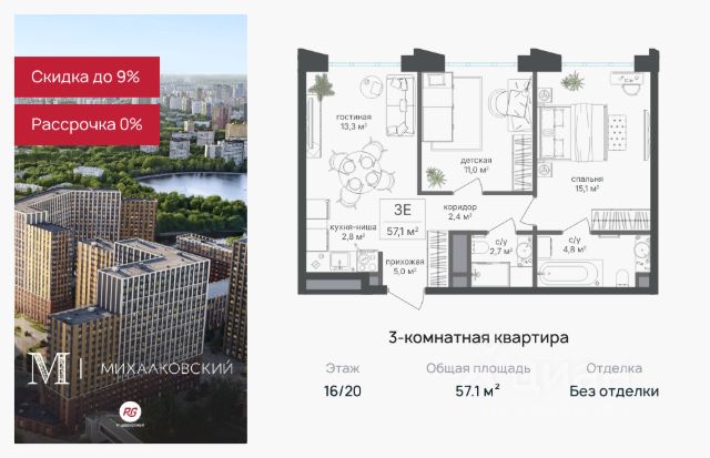 • ✓ В базе Циан 28 квартир на 16 этаже в районе Головинский в Москве