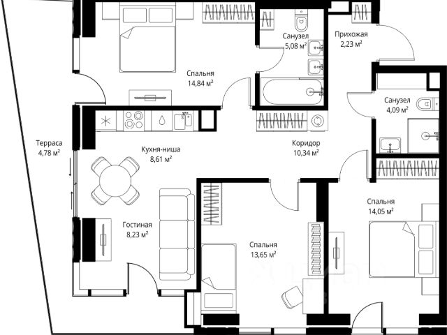Трёхкомнатная квартира площадью 80,80 кв. м. на 16 этаже нового дома премиум-класса Высотка на Жукова "Высотка на Жукова" - это современный дом, который олицетворяет дух настоящей Москвы, сочетая в себе величественность архитектуры московского ренессанса, расположение в лесу, современные инженерные решения и премиальный сервис. Высотка расположена в парке, внутри природного комплекса, в районе Хорошёво-Мнёвники, рядом с проспектом Маршала Жукова, всего в 15 минутах от центра Москвы. Дом окружён лесом с четырех сторон, и жизнь в нём сравнима с загородной резиденцией, но в черте города. Стиль и оформление: Монументальный неоклассицизм этой высотки сочетает лучшие черты различных эпох — от античности и барокко до ар-деко. Архитектурные элементы включают ступенчатые аркады, французские балконы и открытые павильоны-бельведеры, украшенные гризайлью, обелисками и изысканными вазами. Современные технологии: Инновационные технологии концерна КРОСТ позволяют использовать долговечные современные материалы, что делает здание не только красивым, но и функциональным. Удобства и инфраструктура: - Инфраструктура дома продумана таким образом, чтобы каждый житель имел возможность сосредоточиться на самом главном — себе и своём здоровье. - На территории квартала появятся физкультурно-оздоровительный комплекс и современный медицинский центр с широким перечнем услуг для поддержания физического здоровья в шаговой доступности. - Консьерж-сервис 24/7; служба Room Service, уборка квартир, химчистка, клининг, мойка окон; уход за животными: выгул, кормление, груминг. - Расположенная вблизи Москвы-реки и Серебряного бора, а также парка Ходынское поле и Берёзовой рощи, "Высотка на Жукова" окружена лесным массивом Октябрьского радиополя, что обеспечивает, пожалуй, лучшую с точки зрения экологии локацию. - Развитая инфраструктура на первом этаже дома позволит наслаждаться каждым днем и получать всё необходимое в границах дома: ресторан от известного московского ресторатора, продуктовый магазин, центр эстетики и другие удобства. - Величественные входные группы с потолками до 7 метров включают: многофункциональную зону коворкинга, двухуровневую библиотеку, лаундж-зоны с камином, просторные колясочные. - Внутренние дворы с зонами для отдыха и детскими площадками, а также паркинги для автомобилей. - Близость к образовательным учреждениям, медицинским учреждениям и торговым центрам, что делает "Высотку на Жукова" идеальным выбором для семей.