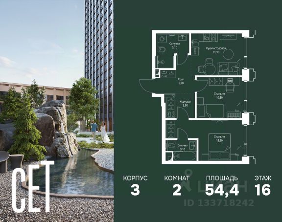 Прямая продажа от застройщика. В ЖК Сет продается 2-комнатная квартира площадью 62.50 м², расположенная в корпусе 3, на 16 этаже 45 этажного дома. Сет имеет стратегически выгодное расположение в ЗАО, в районе с большой историей и блестящим будущим: между природной зоной долины реки Сетунь и Кутузовским проспектом. В рамках возведения первой очереди предусмотрено три корпуса высотой 18, 45 и 59 этажей. На верхних этажах спроектированы общедоступные смотровые площадки с панорамным обзором на центр столицы. Преимущества проекта: • Функциональные планировочные решения • Контроль проникновения через входную дверь • Система управления освещением и температурой в квартире • Система защиты от протечек с функцией перекрытия воды • Вход в подъезд по биометрическим считывателям Face ID • Скоростные лифты • Двухуровневый подземный охраняемый паркинг на 495 машино-мест Застройка Сет включает в себя не только жилые корпуса, но и инфраструктурные объекты. Все необходимое для повседневного комфорта будет расположено в шаговой доступности: • Фитнес-Клуб с бассейном • Ведущая городская школа, детский сад и школа искусств • Центр культуры и досуга • Медицинский центр • Кафе и рестораны Расположение комплекса: Пешком: • Метро "Давыдково" - 17 минут • Парк "Долина реки Сетунь" - 3 минуты • Открытие новых станций метро в шаговой доступности в будущем Инфраструктура: Разнообразить свой день резиденты Веер смогут также проводя больше времени на свежем воздухе. Двор разделен на 4 зоны разных эмоций и действий, которые пересечены и соединены веерными прогулочными маршрутами: • Спортивная площадка устроена в глубине "Кленовой рощи" • В "Чайном домике" будет создан навес с утеплением для отдыха в любую погоду • Площадки для детей воплотятся в "Волшебный лес" с цветами, зеркалами и световым дизайном • "Центральная площадь" устроена у водного оазиса живописного пруда. На машине: • "Москва-Сити" - 15 минут • Садовое кольцо - 20 минут • ТЦ "Океания" - 8 минут • ТЦ "Времена года" - 13 минут • Сколково - 12 минут • Гребной канал - 17 минут Компания MR предлагает своим клиентам специальные условия приобретения квартир в рамках программ ипотечного кредитования от банков-партнеров.