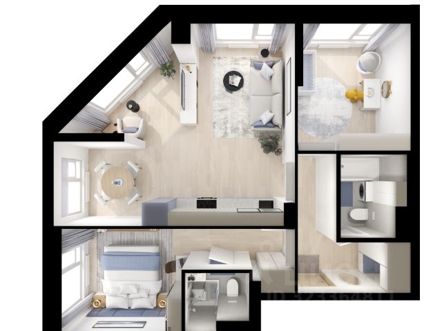 Двухкомнатная евроквартира для молодой семьи и любителей комфорта и уюта. -Угловой вариант планировки с видом на две стороны -Просторная кухня-гостиная для отдыха, общения и приёма гостей -Дополнительные окна наполнят комнаты светом и теплом -Приватная спальня с 3 окнами и местом для гардеробной -Отдельная постирочная с местом для хранения бытового инвентаря -В квартире предусмотрено классическое остекление -Удобная ниша для системы хранения в коридоре. Молодой район для жизни "Акценты" в классе бизнес-лайт — точка роста на севере Москвы. Он предлагает элегантные и строгие фасадные решения, авторский ландшафтный дизайн, а также функциональные и доступные по цене планировки. Проект находится в семи минутах пешком от станции метро "Лианозово" и одноименной МЦД-1. Добраться до МКАД можно будет за 10 минут на авто, а дорога до центра займет около 20 минут. Жилой комплекс, расположенный в районе Восточного Дегунино, предлагает развитую инфраструктуру для тех, кто ценит выбор. Он имеет удобный доступ не только к транспорту, но и к паркам, школам, садам, больницам и другим социальным объектам. В пешей доступности находятся 4 поликлиники, 5 школ, 6 детских садов, 3 бассейна и баскетбольная академия. Еще рядом есть несколько лесопарков: "Лианозово" с аттракционами и спортивными площадками для тенниса, волейбола и баскетбола, "Останкино" с конным клубом, прудом и пейнтбол-площадками. А "Северные Дубки" — это завораживающее пространство для прогулок под кронами вековых дубов, берез и лип. Кроме того, в районе не будет скучно и юным жителям. Можно оттачивать трюки в скейтпарке "Союз". Ловким и прыгучим советуем записаться в акробатический центр "Белка".