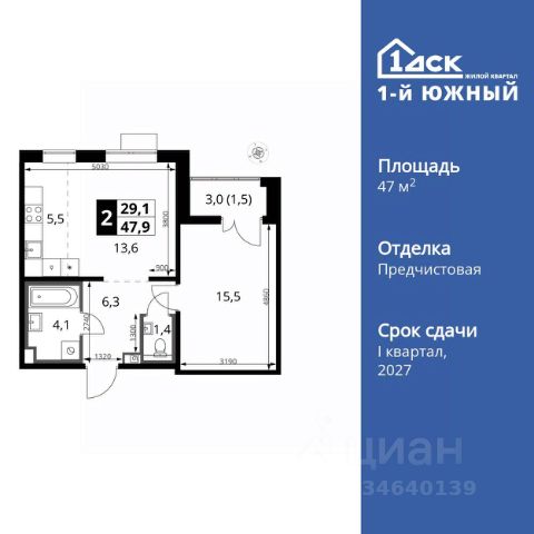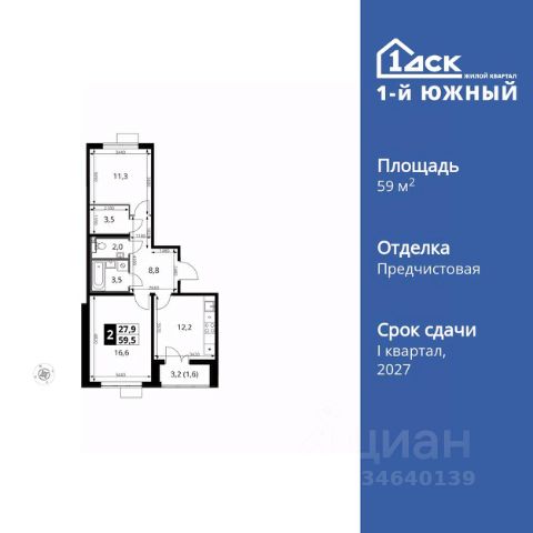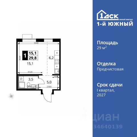 Прямая продажа от застройщика! Жилой Комплекс класса Комфорт Плюс. Продаётся 1-к квартира номер 182 общей площадью 34.4 кв.м. на 16-м этаже 24 этажного здания. Отделка Whitebox. Цена с учётом скидки. Особенности квартиры: - МЦД-5 в пешей доступности - Квартал с южным садом - Свои 3 детских сада и 2 большие школы - Линейная планировка - максимальная функциональность и удобство. - Просторная кухня - место для семейных ужинов и кулинарных экспериментов. - Просторная мягкая зона - комфорт и уют для отдыха всей семьи. - Возможность добавить спальное место - дополнительный комфорт для гостей. - Ниша под шкаф - компактное и удобное место для вещей. - Лоджия - уютное место для отдыха и тишины. Квартира с предчистовой отделкой (White box). Вам не придется заниматься черновыми и трудоёмкими работы, а чистовую отделку и дизайн - сделайте на свой вкус. Информация о комплексе: Одно из преимуществ проектов 1- ДСК большие застекленные лоджии. Другое преимущество честный евро-формат. Во всем проекте предусмотрена система Умный дом. В состав устанавливаемого пакета устройств входит: WiFi реле для управления группами потребителей, беспроводной кран перекрытия с эл. приводом, беспроводной сенсор протечки, Яндекс Станция Мини. Его расположение можно назвать удачным за счет транспортной доступности и близости к природным объектам. По соседству лес, а в каждом дворе плодовые деревья. Весной квартал окутывает бело-розовое облако: это цветут яблони, груши, сливы. К августу в воздух наполняется ароматом созревших плодов. Зимой среди покрытых инеем деревьев протянулась лыжня. Транспортная доступность: - Общественный транспорт: Действующая ж/д станция Булатниково (в перспективе будущая МДЦ D5) в пешей доступности, всего 10-12 минут. - Личный автотранспорт: Удобный выезд на трассу М4-Дон в сторону Москвы и области 850 м, до МКАД - 1 км Внутренняя инфраструктура: Красивые продуманные подъезды - еще одно преимущество проекта 1-й Южный. Вход в сквозные подъезды есть и с улицы, и со двора. Благодаря сплошному остеклению в них всегда светло и уютно. Подъезды расположены на уровне земли, поэтому и молодым родителям с коляской, и жильцам с ограниченными возможностями вход и выход неудобств не доставят. В помещении предусмотрено место под стойку ресепшен с выводом инженерных сетей. Если жильцы решат на общем собрании, что необходим охранник или консьерж, организовать для них рабочее место можно быстро и с минимальными затратами. В подъездах предусмотрены уборные для детей и взрослых. Колясочные в каждом подъезде позволяют поддерживать порядок и чистоту на этажах. На случай прогулки с четвероногим питомцем в непогоду в подъездах устроены лапомойки. Во дворах и на общественных территориях 1-ого Южного столько всего интересного для юных обитателей. Собственные 3 детских сада и 2 больших школы буквально под окнами Изюминка проекта - пешеходный бульвар-дендрарий, он идеален для семейных прогулок. По сторонам прогулочной зоны разместились точки