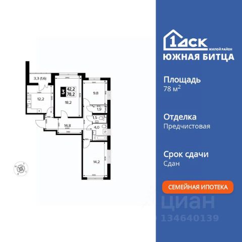 Прямая продажа от застройщика! Семейный жилой район класса Комфорт Плюс Продаётся 3-к квартира номер 701 общей площадью 78.3 кв.м. на 16-м этаже 23 этажного здания. Отделка Whitebox. Цена с учётом скидки. Особенности квартиры: - Окно в ванной - натуральное освещение для уюта и комфорта. - Увеличенное количество окон - дополнительное освещение и свежий воздух. - Просторная ванная - место для расслабления и уединения. - Гостевой санузел - комфорт и удобство для ваших гостей. - Просторная кухня - место для семейных ужинов и кулинарных экспериментов. - Гардеробная - удобство для хранения и организации вещей. - Ниша под шкаф - компактное и удобное место для вещей. - Лоджия - уютное место для отдыха и тишины. - Панорамное остекление лоджии - открывает вид на окружающий мир. Квартира с предчистовой отделкой (White box). Вам не придется заниматься черновыми и трудоёмкими работы, а чистовую отделку и дизайн - сделайте на свой вкус. Информация о комплексе: Сочетание свободного перемещения по внутреннней территории без машин и ощущения абсолютной безопасности благодаря надежным ограждениям - вот что отличает ЖК Южная Битца. На территории комплекса созданы все условия как для активного образа жизни, так и для спокойного времяпрепровождения. Свободно перемещайтесь по внутренней территории в безбарьерной среде! Продуманное зонирование во дворах позволяет отделить тихие зоны для родителей со спящими младенцами и тех, кто хочет почитать на свежем воздухе, от шумных игровых зон. Игровые зоны учитывают возраст детей. Площадки для детей старшего возраста вынесены за пределы дворов. Ощущение уютного дома должно начинаться с подъезда. Мы постарались предусмотреть все нюансы, чтобы наши лифты отвечали самым строгим современным требованиям. А наличие кладовых позволит вам поддерживать идеальный порядок и уют в вашей квартире! Транспортная доступность: В 3 км от МКАД в нескольких минутах езды до трех станций метро: Аннино, Бульвар Дмитрия Донского, улица Старокочаловская и станции МЦД2 - жд Бутово. Внутренняя инфраструктура: Для жителей жилого района "Южная Битца" доступна развитая инфраструктура близлежащих московских районов Чертаново, Южное, Бирюлёво Западное, Северное Бутово и Южное Бутово. Множество образовательных учреждений, объекты здравоохранения, торговые и развлекательные центры, кинотеатры, кафе, рестораны, парки.