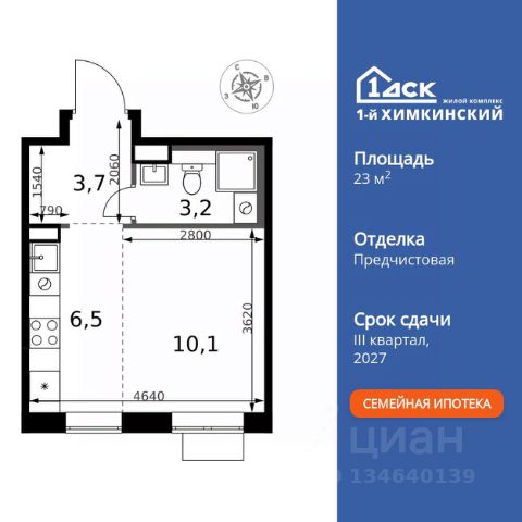 БЕЗ ПЕРВОНАЧАЛЬНОГО ВЗНОСА! • ИПОТЕКА 10% ДЛЯ ВСЕХ БЕЗ НАЦЕНОК • ДОСТУПНО ПО СЕМЕЙНОЙ ИПОТЕКЕ Прямая продажа от застройщика! Жилой Комплекс класса Комфорт. Продаётся квартира-студия номер 206 общей площадью 23.5 кв.м. на 16-м этаже 17 этажного здания. Отделка Whitebox. Цена с учётом скидки. Особенности квартиры: - Линейная планировка - максимальная функциональность и удобство. - Увеличенное количество окон - дополнительное освещение и свежий воздух. - Линейная кухня - функциональность и практичность в одном решении. - Ниша под шкаф - компактное и удобное место для вещей. Квартира с предчистовой отделкой (White box). Вам не придется заниматься черновыми и трудоёмкими работы, а чистовую отделку и дизайн - сделайте на свой вкус. Информация о комплексе: Квартал класса комфорт плюс, где современное городское пространство граничит с удивительной природой вокруг. 1-й Химкинский расположен на территории в 102 га и органично вписан в природное окружение Химкинского леса и канала им. Москвы. В проекте предусмотрена богатая коммерческая инфраструктура с собственным торговым центром, общеобразовательные учреждения и социальные объекты. Изюминкой жилого комплекса будут спортивно-оздоровительный комплекс с термами и SPA и семейный парк развлечений. Транспортная доступность: ЖК "1-й Химкинский" дает возможность выбрать любой способ передвижения как до города, так и до самых разных объектов, которые могут представлять интерес для его жителей. Не важно, какой способ передвижения вы предпочитаете, успевать всегда и везде можно вне зависимости от выбора транспорта. - 8 мин. пешком (800 м) до остановки "Золотая Арка" -10 мин пешком (1 км) до остановки "Поворот на Ивакино" Внутренняя инфраструктура: - Безопасность: закрытые дворы без машин, безбарьерная среда и сквозные подъезды, камеры на детских площадках с возможностью трансляции на смартфоне - Идеальный отдых в кругу семьи: семейный парк развлечений на территории, торговый центр (2-х этажный) общей площадью более 8 тыс. кв. м с фудкортом - Образование: 3 детских сада и современная муниципальная школа на 2450 мест - Спортивная среда: закольцованный веломаршрут с навигацией, спортивный комплекс с термами, закрытый тренажерный зал и зоны ворк-аута - Социальные объекты: поликлиника со станцией скорой помощи, пожарное депо - Подземный паркинг и кладовые помещения на -1 этаже, станция техобслуживания и автомойка на территории