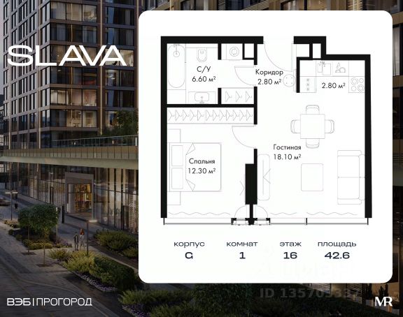 Квартиры премиум-класса в жилом комплексе SLAVA у м. "Белорусская" от застройщика. В продаже 1-комнатная квартира площадью 42.60 м² на 16-м этаже корпуса G. Новый современный жилой комплекс премиум-класса SLAVA расположен в той части центра, где традиция соединяется с прогрессивными городскими тенденциями. Здесь историческая Москва встречается с передовым миром. Популярные театры и старинные церкви соседствуют с современным деловым кварталом и гастрономическим кластером Депо. SLAVA находится всего в 5 мин. пешком от м. "Белорусская", по-новому открывая Ленинградский проспект. Проект был разработан легендарным архитектором Хельмутом Яном, основателем чикагского архитектурного бюро Jahn. Его работы отмечены множеством наград и реализованы в мегаполисах по всему миру. По замыслу архитекторов, жилой комплекс образуют четыре высотные башни, соединенные одноэтажным стилобатом "Хронограф". Здесь, на первом уровне, открытые и закрытые общественные пространства: небольшие сады, места для встреч и отдыха, кафе, рестораны, магазины, спортивный центр и даже выставочное пространство. Важнейшей особенностью пространства является его всесезонность: благодаря правильной организации, ландшафтному дизайну, инженерной инфраструктуре здесь будет уютно и в жару, и в xолод, и в ненастье. На втором уровне стилобата расположится приватный парк для жильцов. Особенности комплекса: - Идеальное расположение в престижной части Москвы (10 мин. от Кремля) - Панорамное остекление - Подземный паркинг с дизайнерской отделкой - Современные инженерные системы - Продуманная внутренняя инфраструктура - Приватный сад 7700 кв.м. Расположение комплекса: - 5 минут до станции метро "Белорусская" - 3 минуты до ТТК - 8 минут до "Садового кольца" Компания MR предлагает своим клиентам специальные условия приобретения квартир в рамках программ ипотечного кредитования от банков-партнеров.
