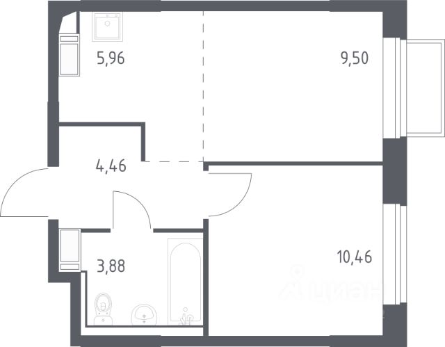 Общая площадь: 53.70 м.кв., Жилая площадь: 31.00 м.кв., Площадь кухни: 16.00 м.кв., Кухня-гостинная