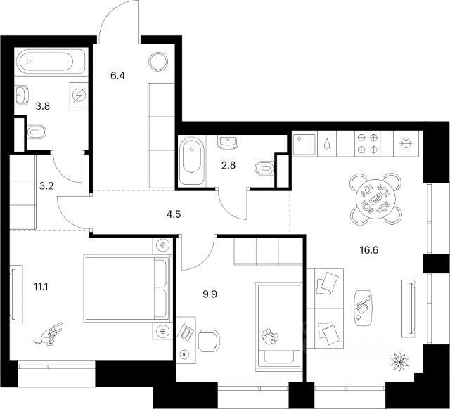 • ✓ В базе Циан 19 квартир на 16 этаже рядом с метро Селигерская