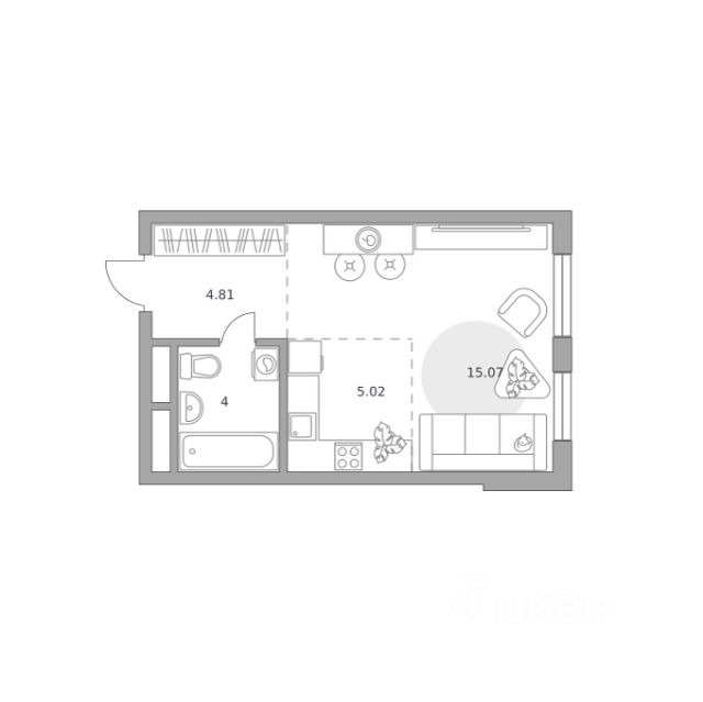 Продаётся студия 129, площадью 23,72 м², на 16 этаже в ЖК "Пехра" корпус 8. Стоимость — от 4969127 руб. Квартира без отделки, планировка односторонняя, окна во двор.