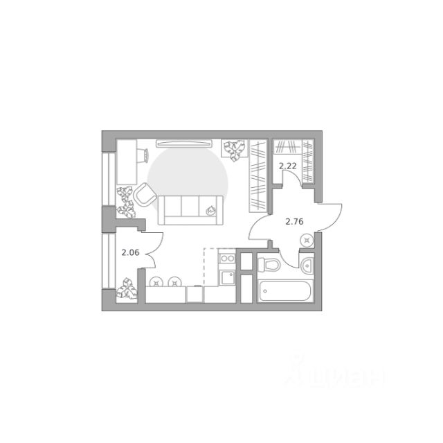 Продаётся студия 736, площадью 26,53 м², на 16 этаже в ЖК "Пехра" корпус 8. Стоимость — от 5166403 руб. Квартира без отделки, планировка односторонняя, окна во двор.