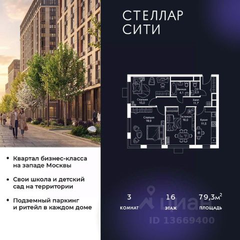 Продается квартира от надежного застройщика Tashir Estate в квартале бизнес-класса Stellar City в ЗАО Москвы. Площадь квартиры составляет: 46.3 кв. м, потолки: 3.1 м Квартира находится на 16 этаже, 4 корпуса жилого квартала Stellar City — микрогорода будущего на орбите Москвы. Stellar City — квартал в ЗАО Москвы вблизи инновационного центра Сколково. В окружении — 11 парков и природных зон, в том числе Долина реки Сетунь, Мещерский лес и парк развлечений The Rink. Город в городе Чтобы дом и инфраструктура вокруг отвечала динамичному лайфстайлу жителя мегаполиса, в основу проекта легла концепция город в городе, которая позволяет решать все бытовые вопросы in-home. В квартале будут возведены школа и детский сад, воркаут-зоны, променад, вело и беговые дорожки, детские площадки для каждого корпуса, а также коммерция на первых этажах для ежедневных покупок. Все необходимое — на расстоянии нескольких шагов. Изящные и лаконичные лобби Авторский дизайн, натуральные материалы в отделке и безупречный интерьер вне времени. Лобби и холлы в проекте бизнес-класса Stellar City ничем не отличаются от входных групп в премиум-сегменте благодаря качественным европейским материалам в отделке, стильному дизайну, консьерж-сервису и уютной зоне ожидания с журнальными столиками и мягкой мебелью. Комфорт и безопасность Закрытая территория, охрана, система СКУД, специально разработанное мобильное приложение дома для резидентов и подземный паркинг с круглосуточным наблюдением и доступом с помощью автоматического считывания номера авто.
