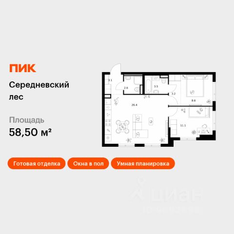 Продаётся 2-комн. квартира площадью 50,9 кв.м на 16 этаже 16 этажного дома (Корпус 2.1.3, Секция 3) проекта ПИК Середневский лес. Светлый просторный подъезд на уровне земли, функциональная планировка, большие окна, c отделкой. В 10 минутах на автомобиле находится станция метро "Внуково", а в 15 минутах — станции "Филатов Луг" и "Саларьево". От них до центра Москвы всего 3540 минут. На рейсовом автобусе от жилого квартала до метро "Филатов Луг" — 20 минут. На территории "Середневского леса" появилось общественное пространство с игровыми площадками, местами для отдыха, пешеходными маршрутами и велопарковкой — для прогулок, отдыха и встреч жителей квартала. Также внутри жилого квартала уже открыта школа на 1100 мест и детский сад для 325 малышей. В дальнейшем откроется ещё один сад для 340 детей. Артикул 1038024 (Застройщик ООО "Специализированный застройщик Середнево")