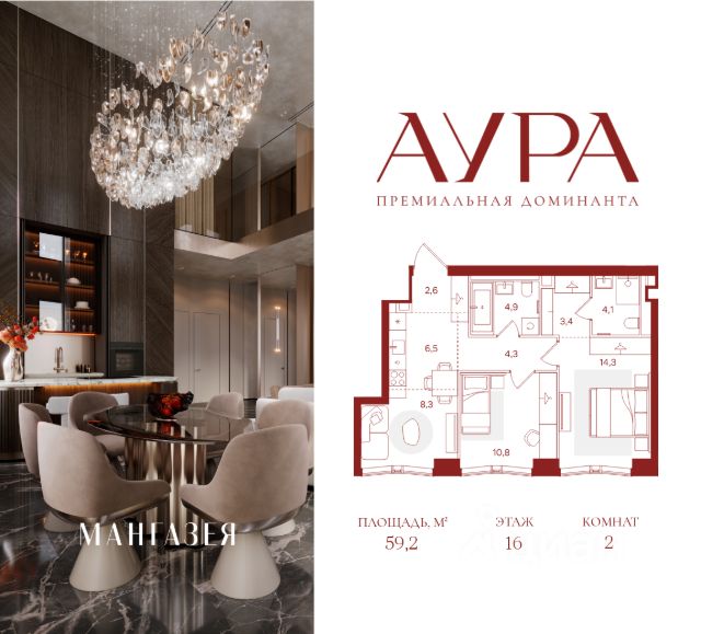 2-комнатная квартира площадью 59,2 м2. Высота потолков 3,16 м. Этаж 16 из 42. Вид из окон - на город. О проекте АУРА новая премиальная доминанта Москвы в 10 минутах от Садового кольца. Проект состоит из 42-этажной Бронзовой башни и 41-этажной Серебряной. Рядом набережная Москвы-реки, Даниловский рынок, музеи и галереи, престижные школы и вузы. Двор и благоустройство Приватная территория АУРЫ состоит из нескольких функциональных зон для тихого отдыха, работы и активного времяпровождения на свежем воздухе. На нижнем уровне расположены детские и спортивные площадки, скалодром и крытый павильон для подвижных игр. Выше — амфитеатр для отдыха и вечерних променадов, уличный коворкинг с мебелью и лаунж-зоны с лежаками у воды. На крыше — тихий уголок для занятий йогой, встречи рассветов и наслаждения закатами. По всему двору проложены пешеходные дорожки с подогревом в зимний сезон. Придомовую территорию АУРЫ украсит уникальный для Москвы объект — скала из натурального камня с водопадом, которая станет новой городской достопримечательностью. Эксклюзивная инфраструктура Только для резидентов: • Бьюти-комната • Коворкинг, переговорные и акустические кабинеты • Детская игровая комната • Спортзал и студия для тренировок • Просторные колясочные • Сервисная комната • Лапомойки для домашних питомцев Инфраструктура в составе проекта: • Ресторан авторской кухни • Современная медицинская клиника • Частный детский сад • Бизнес-центр класса "А" • Коммерческие помещения, закрывающие любые потребности — супермаркет, химчистка и др. Атрибуты комфорта • Индивидуальная вентиляция квартир • Вентиляция с очисткой воздуха в общих зонах • Мультизональное центральное кондиционирование (VRF) • Горячая вода круглый год • Вода качества, сопоставимого с питьевой • Усиленная звукоизоляция квартир Входные группы • Гранд-лобби в стиле современной роскоши • Дизайнерские лобби в каждой башне • Панорамное остекление Квартиры Более 40 планировок: от уютных студий до просторных семейных лотов. Всего 916 квартир площадью от 28,1 до 148,8 м². Высота потолков от 3,16 до 6,2 м. Уникальные планировки: • Квартиры с террасами • Квартиры с окном в ванной • Квартиры с круговым остеклением • Двухуровневые пентхаусы Паркинг и келлеры Двухуровневый подземный паркинг на 563 парковочных места: • Постоянные места: 496 (в том числе 48 мест для маломобильных) • Гостевые места: 67 • Персональные кладовые и велостанция • Мойка автомобилей • Станция для подкачки шин • Зарядки для электромобилей • Зона для разгрузки крупногабаритных предметов Интеллектуальные системы • Персональный бесконтактный доступ на территорию и в здание по электронному ключу (Bluetooth/RFID) • Премиальные лифты Mitsubishi • Автоматический въезд на паркинг для резидентов по распознаванию номеров • Круглосуточное видеонаблюдение с возможностью push-уведомлений • Система датчиков для круглосуточного мониторинга • Усиленный сигнал связи — стабильный прием сотовой связи и интернета на всей территории Сервис •
