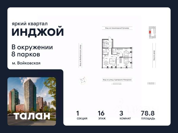 Цена указана с учётом скидки при 100%-й оплате, несубсидированной ипотеке, рассрочке (кроме программы "Рассрочка 0%"). Продается 2-комнатная квартира площадью 66.80 кв. м без отделки. Квартира находится на 16 этаже 20-этажного корпуса 5, в новом жилом комплексе бизнес-класса Левел Войковская, расположенном рядом с живописным заповедником "Покровское-Стрешнево" (застройщик - компания Level Group/Левел групп). Прекрасная транспортная доступность - 7 мин. пешком до станции МЦК "Балтийская"; - 15 мин. пешком до станции метро "Войковская"; - 8 мин. на машине до ТТК; - 15 мин. на машине до центра Москвы; - 20 мин. на машине до Москва-Сити. Продуманный архитектурный проект - стильная архитектура от мастерской Фефелова В. В.; - панорамные виды на парки, Химкинское водохранилище и Останкинскую башню; - лобби с высотой потолков до 6,45 метров; - более 20 видов планировок, включая редкие форматы квартир с террасой и увеличенной высотой потолков до 5,42 метров; - 2 варианта дизайнерской отделки в корпусе 4 как дополнительная опция к отделке white box: стиль Modern в светлых холодных тонах и стиль Classic в нейтральной бежевой гамме. Квартиры в корпусах 3 и 5 сдаются без отделки. Расположение Жилой комплекс Левел Войковская строится в престижном Северном округе Москвы, где развитая инфраструктура и живописная природа переплетаются в единый ансамбль. Войковский район окружают парки и набережные. В шаговой доступности - парк "Покровское-Стрешнево", не более 15-ти минут на велосипеде занимает путь до Тимирязевского парка и 9-ти минут до парка усадьбы Михалково. Рядом более 60 школ, 75 дошкольных учреждений, 17 государственных и 6 частных вузов, 25 супермаркетов, 4 торговых центра, среди которых ТЦ "Метрополис" и ТЦ "Авиапарк". Внутренняя инфраструктура На территории жилого комплекса предусмотрены коммерческие помещения: кафе, ресторан, пекарня и другие сервисы на первых этажах корпусов. Для жителей будет доступен отапливаемый подземный паркинг на 244 машино-места с доступом с любого этажа на лифте. На территории паркинга будет расположено 125 кладовых помещений для хранения сезонного инвентаря. Лобби и благоустройство Дизайн лобби жилого комплекса Левел Войковская создан совместно с бюро BLANK. Теплая цветовая гамма, ресепшен, зоны ожидания, лапомойки и гостевые санузлы - каждая деталь превращает лобби в комфортное продолжение вашего дома. 1,15 га площади в первых двух этапах строительства отведено под приватный внутренний двор, который спроектирован совместно с бюро "Правда". Детские площадки для всех возрастов, спортивные пространства для йоги, воркаута и петанка, уютные зоны для тихого отдыха или работы. Здесь утро начинается с вдохновения, а вечер наполнен приятными моментами. Лифты Комфортное перемещение внутри жилого комплекса обеспечат надёжные лифты с доступом в паркинг с жилых этажей. В каждом корпусе предусмотрено по 3 грузопассажирских лифта.