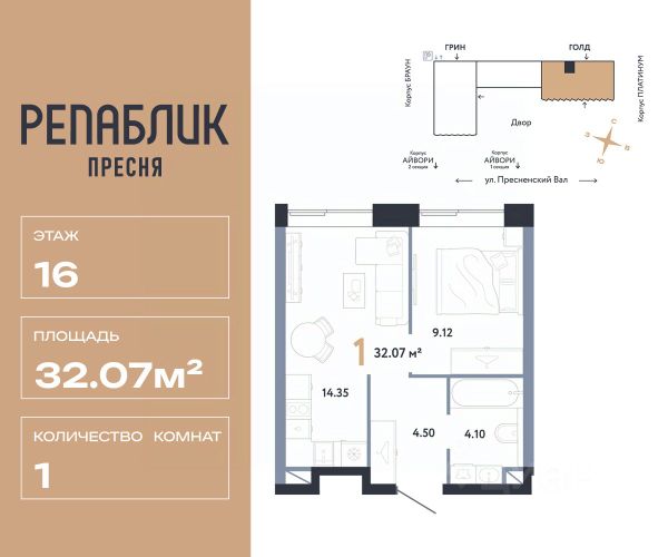 Рассрочка 0% с первым взносом от 20%, ипотека с субсидией или наличные. Подберём способ оплаты индивидуально. Продается 2комнатная квартира на 16 этаже от застройщика Страна Девелопмент. Площадь квартиры 43.03 кв. м. Дизайн-квартал "Republic" — новый проект премиум-класса в Москве от федерального застройщика "Страна Девелопмент". ЦАО, Пресня, 7 мин. от метро "Белорусская". 10 жилых башен и 4 восстановленных здания локомотивного депо образуют уникальное пространство. "Republic" — место, где вы ощутите гармонию истории и современности. За 12 мин. вы сможете дойти до Московского зоопарка, за 10 мин. на авто доехать до Патриарших прудов и Белого дома. Преимущества • Благоустройство. SPA-комплекс с бассейном и термами, гастрономический, учебный и шопинг-центры, приватный бульвар и яркие арт-пространства — для жителей предусмотрены все элементы премиального комфорта. • Панорама на центр. Наслаждайтесь видами ЦАО каждый день: панорама на историческую Пресню и башни Москва-Сити — из своей квартиры или с приватной террасы на крыше. • Концептуальное лобби в каждой башне. С общей террасой на кровле, с библиотекой, коворкингом и фитнес-рум. Стойка консьержа перетекающая в бар и др. • Современные форматы квартир. Свободные планировки, с террасой или балконом, с возможностью установки камина, от 1-комнатных до пентхаусов. • Отделка Квартиры сдаются без отделки или в формате White box. При White box уже выполнены все шумные и грязные работы: произведена разводка электричества с подрозетниками, установлены откосы из гипсокартона, устроена стяжка пола с шумоизоляцией и др. Способы покупки Сотрудники "Страна Девелопмент" будут сопровождать вас на каждом этапе сделки, помогут получить одобрение по ипотеке или снизить ежемесячный платеж. - ипотека (стандартная/с субсидией/траншевая) - рассрочка (с ПВ от 20%) - с использованием материнского капитала - оплата наличными
