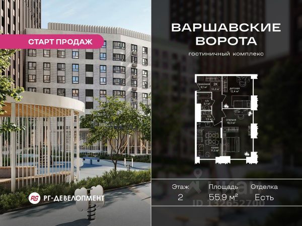 Продаются 2-комнатные апартаменты 56.9 кв.м. в МФК "Варшавские ворота" на 2-м этаже 9 этажного дома. МФК "Варшавские ворота" — это точка баланса между природой и городом, стилем и функциональностью, жизнью сегодня и устойчивым будущим. Коротко о важном: - 1 минута пешком от м. Аннино; - Удобные выезды на Варшавское шоссе и МКАД; - Высота потолков 2,7 - 3 м; - Закрытый двор-парк; - Школы и детские сады в 10-15 минутах пешком от дома; - Технические лоджии для размещения кондиционеров; - Подземный паркинг; - РГ-Девелопмент — ТОП-20 крупнейших застройщиков Москвы. Проект сочетает в себе современную архитектуру и продуманное благоустройство с уникальным природным окружением. Всего в нескольких минутах от дома — девять парков, каскад прудов и крупнейшие лесопарковые зоны Москвы, создающие ощущение жизни в зеленом оазисе посреди мегаполиса. Архитектурная концепция - стиль Чикаго в Москве. Фасады облицованы вентфасадами под клинкерную плитку. Фасады подчеркивают строгие линии и современный стиль, а входные группы разработаны московским бюро Синтаксис. Вестибюли оформлены с применением керамогранита, декоративной штукатурки и гипсовых панелей, детали из латуни добавляют изысканности. Проект находится в 1 минуте пешком от метро "Аннино", в 12 минутах от станции "Улица Академика Янгеля" и рядом с МЦД-2 "Красный Строитель". Для автомобилистов предусмотрен прямой выезд на Варшавское шоссе и два съезда на МКАД, что позволяет быстро добираться в любую часть города. Среди планировочных решений представлены разнообразные форматы: от функциональных студий до просторных 4-комнатных квартир и апартаментов. Высокие потолки усиливают ощущение простора, а продуманные планировки включают мастер-спальни, гардеробные, объединённые кухни-гостиные и несколько санузлов. Центральное пространство комплекса — закрытый двор без машин. Он разделён на функциональные зоны: детские игровые комплексы, спортивные площадки и уютные места для тихого отдыха. На первых этажах разместятся магазины, кафе и сервисы, что позволит решать повседневные задачи, не покидая территорию комплекса. Для семей с детьми предусмотрен частный детский сад на 50 мест. Подземная парковка и кладовые обеспечат удобство хранения и безопасность автомобилей. Комплекс окружён девятью парками и лесопарками, каждый из которых обладает своей атмосферой. Выйти на пробежку в Аннинском лесопарке, насладиться прогулками по аллеям в Битцевском лесу, спланировать пикник или велопрогулку в Покровском парке, любоваться каскадом Кировоградских прудов. Всего в двух станциях — музей-заповедник "Царицыно" с дворцами, фонтанами и живописными пейзажами. Здесь каждый житель найдёт своё любимое место для отдыха. Южное Чертаново - район развитой инфраструктурой, где сочетаются городские удобства и природное окружение. В шаговой доступности находятся школы, детские сады, спортивные комплексы и торговые центры. Это спокойный и благоустроенный район.