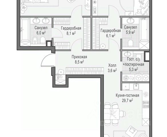 Старт продаж в новом клубном доме Климашкина 7/11 Продаётся 3-комнатная квартира общей площадью 156.10 м². Климашкина 7/11 — Клубный семейный дом с ультрасовременной архитектурой, в которую оправлена антикварная редкость — полностью сохраненный фасад особняка XIX века. В проекте всего 46 резиденций — ни одной лишней, ни одной случайной. На этаже — от двух до четырех квартир, что создает исключительную приватность, редкую даже для элитного сегмента. Окружение Расположенный в тихом интеллигентном квартале Пресненского района, Клубный дом Климашкина 7/11 соседствует со знаковыми зданиями старой Москвы Пресненского района. Всего в нескольких шагах находится памятник конструктивизма Центр Зотов, мастерская Зураба Церетели и Римско-католический кафедральный собор, а также в пешей доступности — Музей русского импрессионизма, парк Красная Пресня и Патриаршие пруды, Театр Сатиры и Московский Зоопарк. Транспортная доступность — 5 минут до Садового кольца; — 5 минут до ТТК; — 10 минут до Делового центра; — 12 минут до Белорусского вокзала; Внутренняя инфраструктура — Просторное дизайнерское лобби с потолками до 5 м; — Собственный приватный ландшафтный сад от L. BURO; — 2-х уровневый подземный паркинг на 55 машино-мест; — Собственный SPA и фитнес-центр; — Умные системы безопасности и сервис самого высокого уровня.