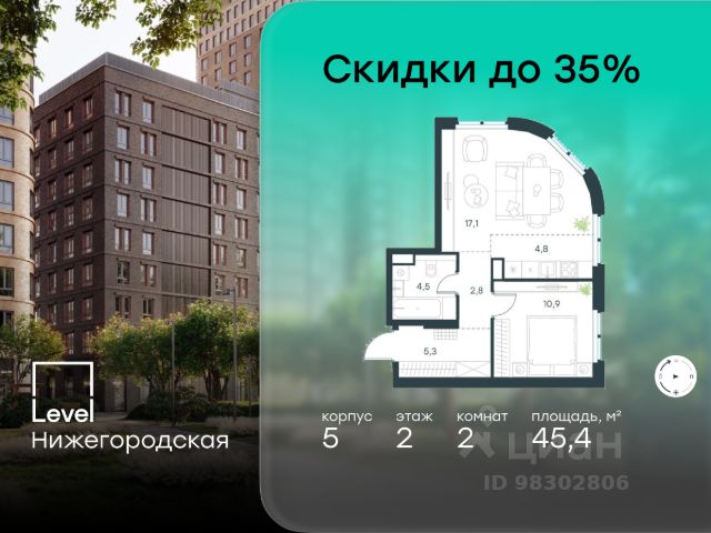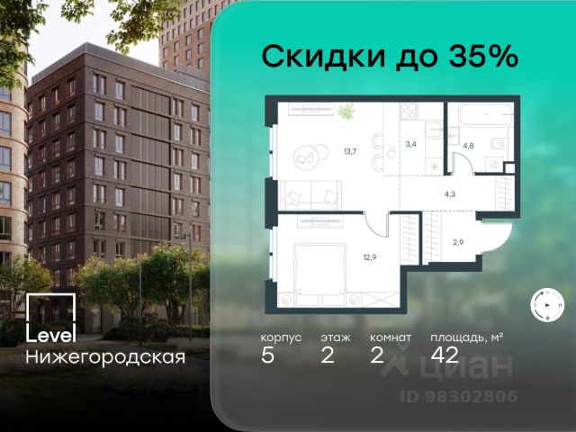 Цена указана с учётом скидки при 100%-й оплате, несубсидированной ипотеке, рассрочке (кроме программы "Рассрочка 0%"). В активно развивающемся районе на юго-востоке столицы продается 3-комнатная квартира площадью 66,7 кв.м без отделки.. Квартира расположена на 2 этаже 9-этажного этажного корпуса 4 в жилом комплексе комфорт-класса Level Нижегородская (компания Level Group/Левел групп). Отличная транспортная доступность - 10 мин. пешком до станции метро, МЦД-4, БКЛ и МЦК "Нижегородская"; - 13 мин. пешком до станций метро "Андроновка" и "Перово"; - 10 мин. на авто до ТТК; - 14 мин. на авто до Садового кольца. Благоустройство Благоустроенная территория комплекса делится на внешнюю и внутреннюю. Внутренняя часть - это закрытый двор 0,9 га, где обустраиваются детские площадки для разных возрастных групп, беседки для отдыха и работы, несколько спортивных зон, включая воркаут-зоны и лужайку для бадминтона. Здесь же появится ухоженный луг с прогулочными маршрутами. Рядом с жилым комплексом будет создан ландшафтный парк площадью 2,4 га. В парке будут высажены высокие деревья, луговые травы и кустарники, благоустроены лаунж-зоны у пруда, дорожки для бега и прогулок. В центре парка предусмотрена событийная площадь, рядом расположатся дополнительные спортивные и детские площадки, а также зона для выгула домашних питомцев. Внутренняя инфраструктура Дома жилого комплекса будут оснащены коммерческими помещениями, где откроются все необходимые сервисы: магазины, аптеки, салоны красоты, кофейни, службы доставки и многое другое. Комфорт - это когда всё рядом. Кроме того, на территории Level Нижегородская предусмотрен подземный отапливаемый паркинг. Этап 1 включает 335 машино-мест и 143 кладовых помещения для хранения сезонных вещей. Технологии и безопасность На территории всех общественных зон постоянно ведется видеонаблюдение и предусмотрен высокоскоростной Wi-Fi. Подъезды, паркинг и внутренний двор оснащены системой контроля доступа. Для удобства жителей создано мобильное приложение, позволяющее связаться с управляющей компанией, осуществлять удаленное управление видеодомофоном или просмотреть изображение отдельных видеокамер по заявке. Для безопасного перемещения по этажам и комфортного спуска в паркинг будут установлены современные лифты от компании BLT Brilliant Elevator. Скорость лифтов - 1,6 - 2,5 м/с. Особенности - Архитектура от экспертов из бюро ARCH(E)TYPE; - Разноуровневая застройка - от секций средней этажности до высоток в 45 этажей (этап 1); - Окна шириной до 2,2 метров (этап1) с видами на Останкинскую башню, Измайловский парк, "Москва-Сити" и Кусковский лесопарк; - Лобби с окнами в пол и потолками от 3,4 метров, оснащенные консьерж-сервисом; - Более 35 видов планировок, включая редкие форматы. Артикул 4-2-4.