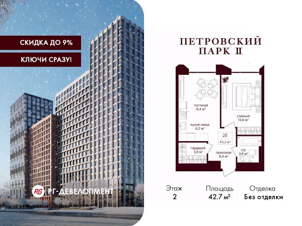 Рассрочка 0%. Первый платёж 30%, второй - не позднее 31.12.2026 г. Продаётся 1-комнатная квартира 45.6 кв.м. в ЖК "Петровский парк II" на 2-м этаже 17 этажного дома. ЖК "Петровский парк II" — жилой комплекс в Савёловском районе, где город ощущается иначе. Здесь история и масштаб Москвы не давят, а задают фон для спокойной, уверенной жизни рядом с центром. Это место, где статус читается не в громких формулировках, а в окружении, архитектуре и ощущении пространства. Коротко о важном: • Район с глубоким историческим контекстом и парковым окружением; • 5 минут пешком до метро "Динамо", рядом с деловой и культурной жизнью города; • Редкое сочетание: энергия мегаполиса и тишина зелёных аллей; • Архитектура от бюро Syntaxis с пластикой форм и индивидуальным характером фасадов; • Панорамные виды на город и зелёные массивы Петровского и Тимирязевского парков; • Закрытый двор без машин, вдохновлённый эстетикой дворцовых садов; • Просторные гранд-лобби с высокими потолками и выверенной, респектабельной эстетикой; • Частный детский сад во дворе; • Подземный паркинг и кладовые; • РГ-Девелопмент - ТОП-20 крупнейших застройщиков Москвы. Расположение комплекса формирует особое ощущение свободы выбора. Утром - прогулка по тенистым аллеям Петровского парка, днём - работа и встречи в деловых кластерах поблизости, вечером - культурные события, рестораны и городские пространства в нескольких минутах пути. Здесь расстояния измеряются не километрами, а шагами от дома. Архитектура "Петровского парка II" задумана как современная доминанта района и одновременно как уважительный диалог с исторической средой. Асимметричные объёмы, волнообразные элементы и игра света и тени создают выразительный, но сдержанный силуэт. Архитектура наполнена воздухом и визуальным ритмом, оставаясь спокойной и уверенной. Общественные пространства продолжают эту логику. Два гранд-лобби с высокими потолками и благородной цветовой палитрой воспринимаются как пространства, где хочется замедлиться: встретить гостей, перевести дыхание после дня или просто почувствовать уровень среды, в которой вы живёте. Внутренний двор комплекса - это отдельный мир, закрытый от машин и городского шума. Ландшафтный дизайн отсылает к регулярным дворцовым садам: геометрия аллей, зелёные "кабинеты", цветники и камерные зоны отдыха создают разные сценарии для повседневной жизни. Здесь органично соседствуют детские игровые пространства, плейхаб, спортивные зоны и тихие места для отдыха. На территории комплекса расположены магазины, кафе и рестораны, а также частный детский сад, встроенный в общую структуру двора. Подземный паркинг и кладовые поддерживают ощущение порядка и цельности пространства.
