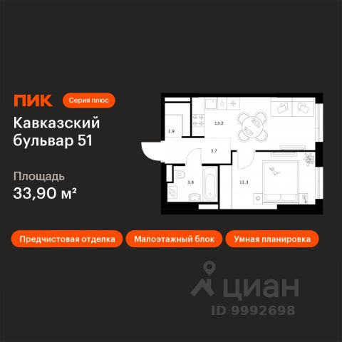 Продаётся 2-комн. квартира площадью 47,8 кв.м на 2 этаже 23 этажного дома (Корпус 3.1, Секция 1) проекта ПИК Кавказский бульвар 51. Светлый просторный подъезд на уровне земли, функциональная планировка, большие окна, c отделкой. "Кавказский бульвар 51" — современный жилой квартал в районе Царицыно. Проект частично реализован. "Кавказский бульвар 51" находится в районе Царицыно, недалеко от одноимённого музея-заповедника. До метро "Кантемировская" — 17 минут пешком. За 20 можно дойти до станции "Чертаново". В 10 минутах на машине — МКАД, в 11 минутах — Варшавское шоссе, а в 16 минутах — ТТК. В проекте жилые дома высотой от 5 до 33 этажей, детский сад и школа. На первых этажах доступны магазины, кафе, салоны красоты и другие сервисы — чтобы купить кофе и свежий хлеб к завтраку, можно просто спуститься на лифте. В уютных дворах-парках есть места для отдыха и детские площадки. Для прогулок на свежем воздухе мы построим для жителей широкий пешеходный бульвар. В районе вокруг "Кавказского бульвара 51" есть всё для комфортной жизни: детские сады, школы, поликлиники, магазины и торговые центры. Девять минут на машине — и вы у музея-заповедника "Царицыно", где можно гулять среди исторических построек, лежать на траве под тенью деревьев или заниматься спортом на специальных площадках. Есть парки и поближе: до Аршиновского можно дойти за 8 минут, а до парка "Сосенки" — за 13 минут. Артикул 1009341 (Застройщик АО "СПЕЦИАЛИЗИРОВАННЫЙ ЗАСТРОЙЩИК "ТОРГОВЫЙ ДОМ СПУТНИК")