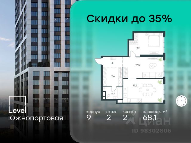 Цена указана с учётом скидки при 100%-й оплате, несубсидированной ипотеке, рассрочке (кроме программы "Рассрочка 0%"). В северной части района Печатники продается 3-комнатная квартира площадью 86.00 кв.м без отделки. Квартира расположена на 2 этаже 49-этажного корпуса 8 в жилом комплексе комфорт-класса Level Южнопортовая (компания Level Group/Левел групп). Отличная транспортная доступность: - 10 мин. пешком до станции метро "Кожуховская"; - 20 мин. пешком до станции МЦК "Дубровка"; - 3 мин. на авто до ТТК; - 13 мин. на авто до Садового кольца; - 15 мин. на авто до Бульварного кольца. Продуманный архитектурный проект: - авторская архитектура от бюро СПИЧ; - уникальные виды на реку, парки и достопримечательности города; - высота потолков в квартирах до 6 м; - окна высотой до 1,87 м с высоким коэффициентом сопротивления теплоотдаче. Расположение: Level Южнопортовая строится в северной части района Печатники - самой приближенной к центру. Здесь будет сформирован новый район "Южный порт", где построят крупный жилой и общественно-деловой центр, аналогичный Москва-Сити. В течение 10-12 лет в этом месте появятся не только жилые дома, но и развитая инфраструктура для жизни и работы. А еще совсем рядом находится набережная Москвы-реки, где планируется построить причалы для речных трамвайчиков и канатную дорогу. Уже сейчас вокруг жилого комплекса работают десятки магазинов и торговых центров, рядом расположено 6 парков, среди которых музей-заповедник "Коломенское". В 10 минутах пешком - 2 муниципальных и 2 частных детских сада, 7 общеобразовательных школ. Внутренняя инфраструктура: Для отдыха жителей в каждом корпусе предусмотрено лобби, оснащенное местами для отдыха, гостевыми санузлами и лапомойками, а в отдельных корпусах - камином. За счёт больших окон и высоких потолков пространства будут наполнены воздухом и светом. На первых этажах жилого комплекса откроются магазины, салоны красоты, фитнес-центр. Для детей строятся собственные детский сад и школа. Благоустройство: Внутренний двор комплекса разработан совместно с бюро GAFA. Основная идея - создать аналог Центрального парка в Нью-Йорке, гармонично сочетая высотные здания и большое изолированное парковое пространство. Вся площадь двора-парка будет огорожена и составит более 2 га, из которых 45% - озеленение. Одним из самых важных ландшафтных элементов здесь станет небольшая речка, наполняющаяся во время дождя. Вокруг неё появится сеть из островов, внутри которых расположатся тематические зоны спорта и отдыха. Технологии и инженерия: - автоматическая передача в управляющую компанию показаний квартирных счётчиков; - телефонная связь, телевидение и интернет на базе оптической мультисервисной сети; - гостевой Wi-Fi в лобби и на территории двора; - единый ключ доступа для входа на территорию комплекса.