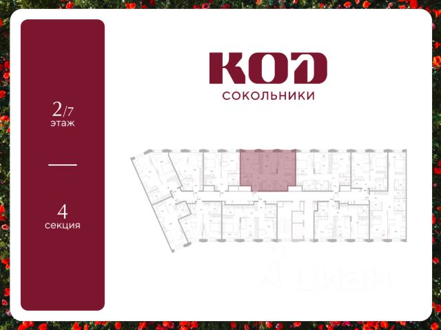 В семейном жилом квартале, расположенном в окружении более 500 га леса и объектов исторического наследия, продается студия площадью 31.7 кв. м без отделки. Квартира расположена на 2 этаже 7-этажного корпуса 2.1 жилого квартала бизнес-класса КОД Сокольники от девелопера Новая Эра. Отличная транспортная доступность - 3 мин. пешком до станции МЦД-3 "Митьково"; - 7 мин. пешком до станции метро "Сокольники"; - Удобный выезд на Русаковскую улицу; - 5 мин. на авто до ТТК; - 15 мин. на авто до Садового кольца. Продуманный архитектурный проект - Выразительная архитектура, созданная бюро "Остоженка"; - 70% квартир в квартале - видовые, что позволяет ежедневно наслаждаться панорамами на парк Сокольники, Останкинскую телебашню, исторический центр и Алексеевский монастырь; - 30% квартир - угловые. Увеличенные оконные проемы, панорамное остекление и продуманное расположение комнат усиливают эффект обзорности: гостиные и спальни получают максимум дневного света и живописные виды, которые становятся частью интерьера; - Высокие потолки от 3 метров в типовых планировках; - Дизайнерские лобби от модной студии 211.Studio; - Двухуровневый паркинг с подогреваемой рампой и пологим заездом, подходящим даже для спорткаров; Расположение Семейный жилой квартал КОД Сокольники - это дома бизнес-класса в престижном районе Сокольники. Район отличает хорошая транспортная доступность: несколько минут пешком до станции метро "Сокольники" и платформы МЦД-3 ("Митьково"), регулярные трамвайные и автобусные маршруты, удобный выезд на Русаковскую улицу и Третье транспортное кольцо. До Садового кольца можно доехать за 15 минут. Для пешеходов и велосипедистов в парковой зоне будут оборудованы широкие тротуары и велодорожки, обеспечивая комфортные условия для активного образа жизни. Внутренняя инфраструктура Резидентам будет доступна развитая клубная инфраструктура: собственный фитнес-рум, коворкинг с панорамным видом на парк, игровая комната для детей, пространства для мастер-классов и просторная гостиная, которую можно использовать для отдыха, просмотра кино или проведения мероприятий. На первых этажах жилых домов разместятся объекты стрит-ритейла: кафе, рестораны, магазины и различные сервисы - от аптек и салонов красоты до ателье и барбершопов. Рядом с жилыми корпусами появится деловой квартал с офисами и торговыми площадями на 75 тысяч кв. м, что делает проект привлекательным для тех, кто ценит возможность жить и работать поблизости. Благоустройство Центральным элементом квартала станет благоустроенный двор-парк площадью 3 га с собственным прудом и зелеными зонами для прогулок и отдыха. В границах двора предусмотрены современные игровые и спортивные площадки: мультифункциональная зона воркаута, площадки для волейбола и стритбола, площадки для пилатеса и йоги, скалодром, а также беговые и веломаршруты. В состав проекта войдет образовательный центр, включающий детский сад для 350 малышей, а также школу на 650 учеников.