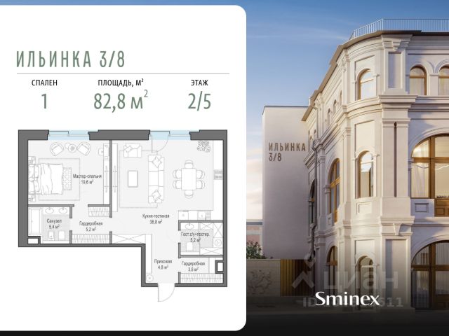 "Ильинка 3/8" - cамая близкая к Кремлю и Красной площади коллекция клубных особняков. Дом расположен на месте Тёплых торговых рядов: 160 м до Красной площади, 300 м до Кремля, 500 м до Администрации Президента. Ранее в этой исторической локации проживали представители царских сословий. По соседству находятся одна из старейших в городе Богоявленская церковь и Биржевая площадь. Расположение дарит жителям комфорт и разнообразие: пересечение Ильинки и тихого Богоявленского переулка с минимальным трафиком автомобилей, близость Никольской улицы с её насыщенной инфраструктурой - от топовых бутиков до ресторанов Michelin. "Ильинка 3/8" - это 7 эксклюзивных и роскошных особняков: 3 деликатно реконструированных исторических и 4 новых. В них представлена инфраструктура только для своих: красивый двор-сад с парадной и торжественной входной группой; лобби-бар для встреч, где можно подождать домочадцев, выпить чашечку кофе или взять её с собой; бесплатный фитнес по стандарту инфраструктуры для здорового образа жизни FIT LAB, общественная гостиная по стандарту FRIENDS LAB для знакомства и совместного времяпрепровождения соседей в доме. В клубных особняках представлены самые полные и лучшие в своём классе системы комфорта. О жителях и доме заботится Служба комфорта Smineх, которая предлагает сервис уровня 5-звёздочных отелей и сохраняет изначальный облик и концепцию дома. Девелопер проекта - Sminex, который специализируется на создании комфортной и престижной среды для жизни и работы.