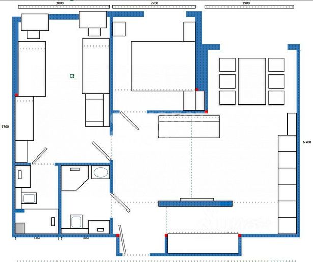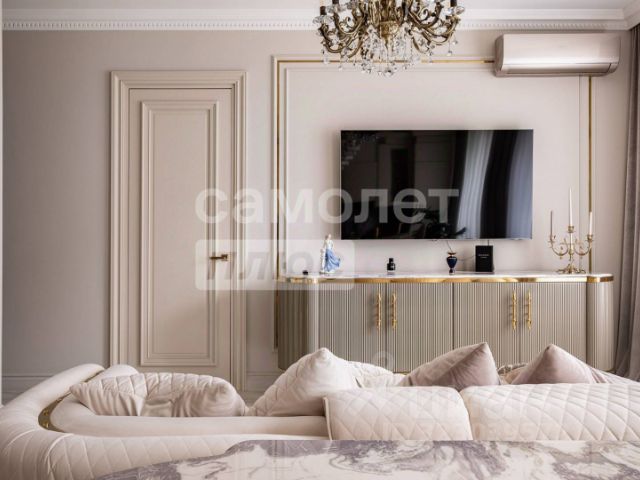 Стены окрашены , в отделке использован широкоформатный керамогранит, новые стеклопакеты и радиаторы КЗТО, ванна Bette, два кондиционера, все освещение Maytoni. Установлена система от протечек, мастер выключатель при входе.