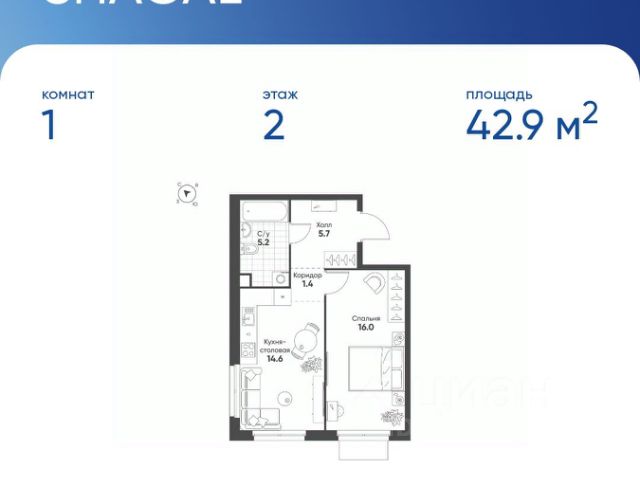 Продаётся однокомнатная квартира. Один взрослый собственник. Более пяти лет в собственности. Прописанных нет.